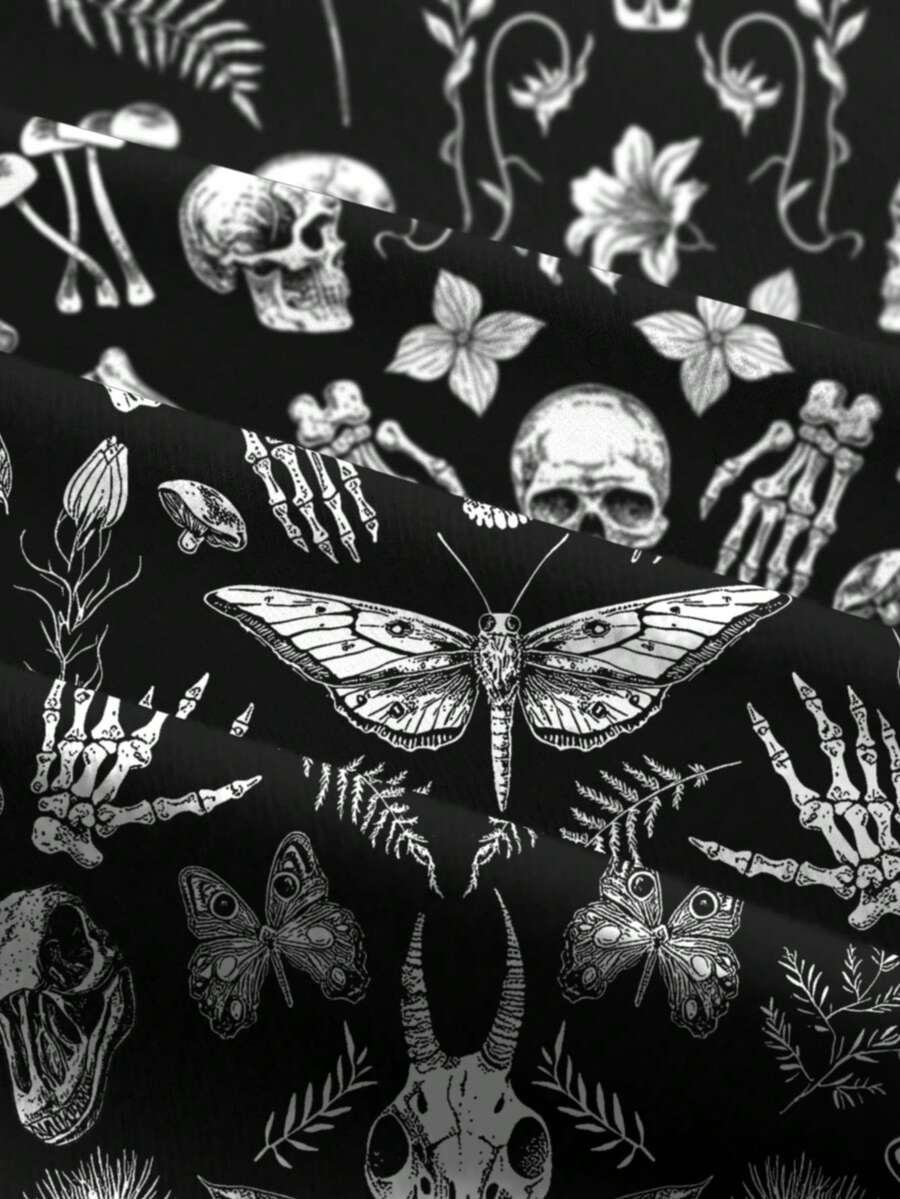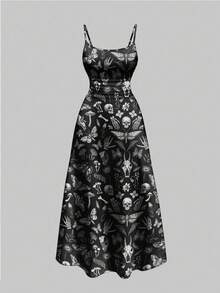 Goth Gothic Dark Skull,Ruchedd Floral, Mushroom, Sun & Moon Print A-Line Dress For Women