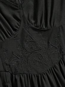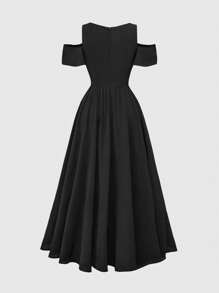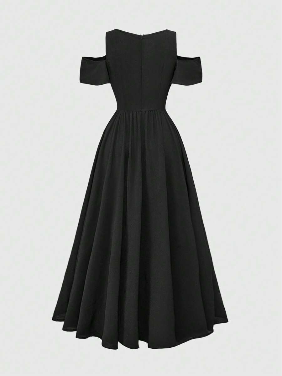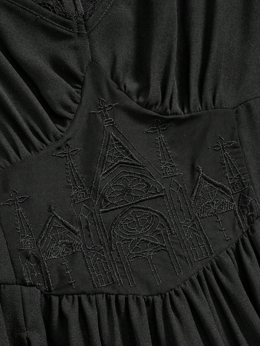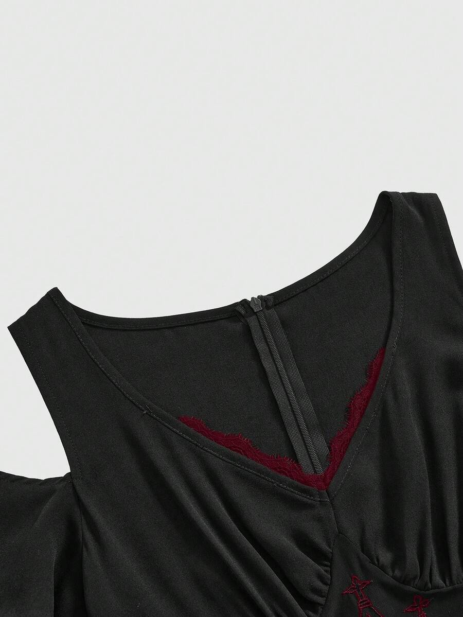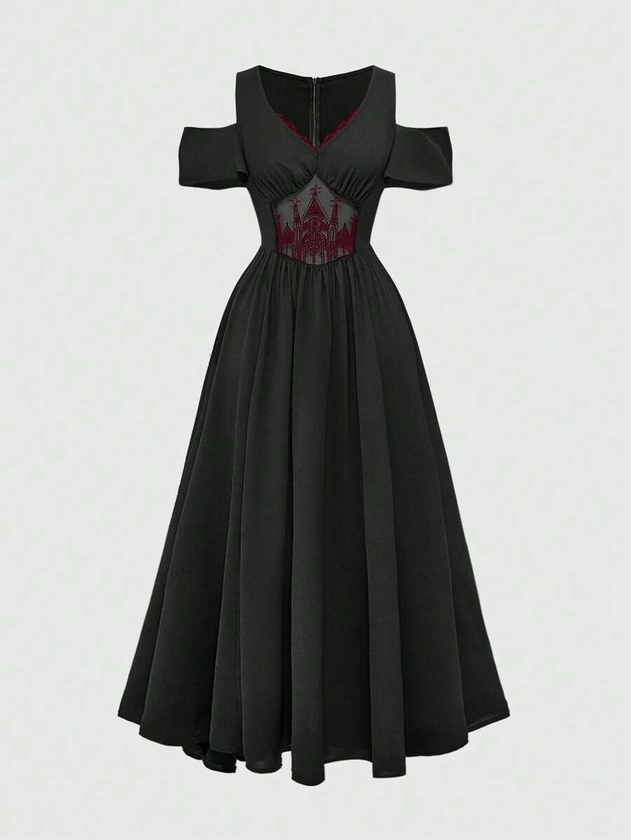 Gothic Embroidery Hollow Pattern Deep V-Neck Open Shoulder High Slit Ladies Summer Dress, Prom Dress