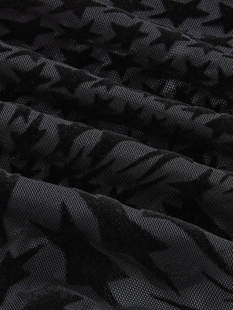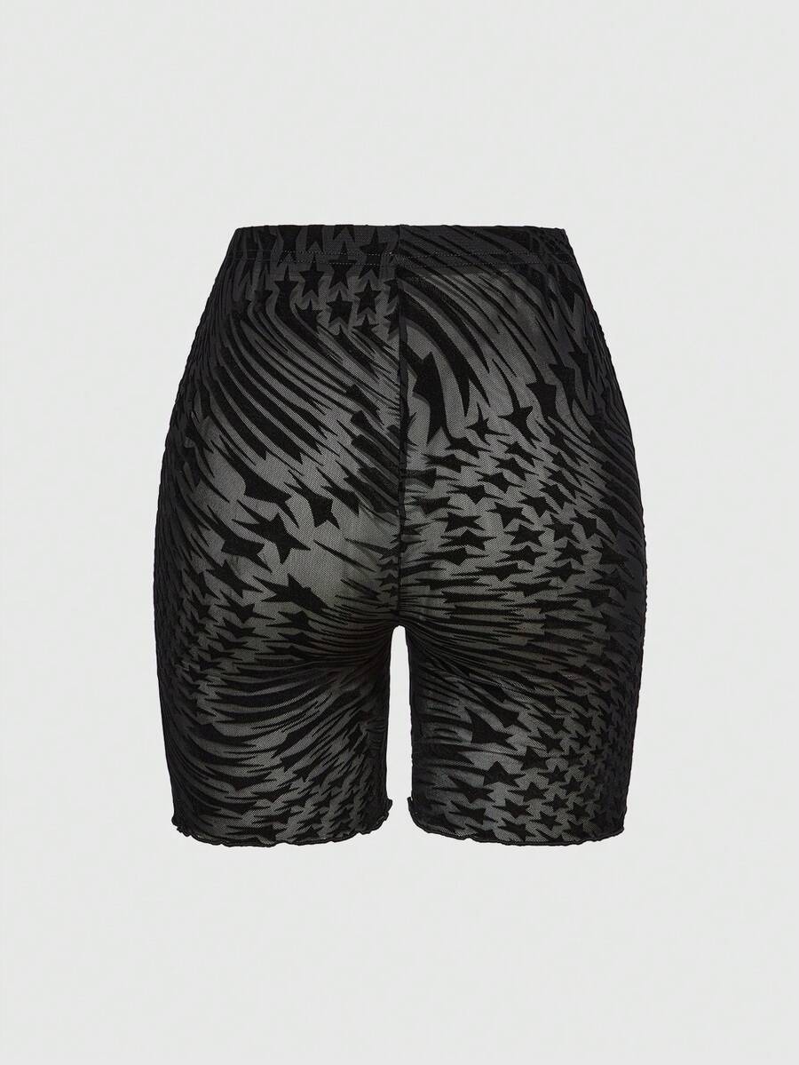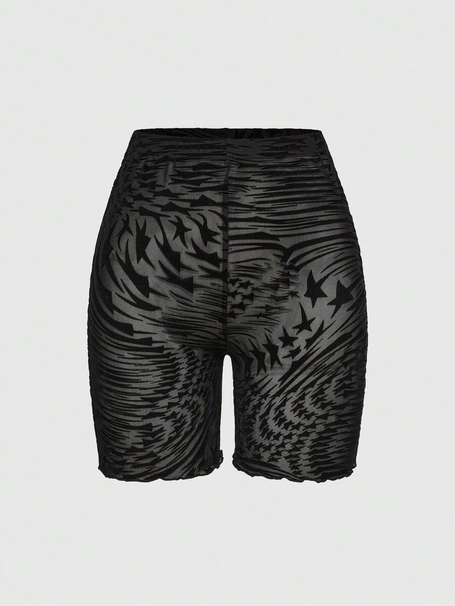 Gothic Lace Bottom Tiger Stripes Contrast Lace Cami & Shorts Lingerie Set, Tight & Sheer