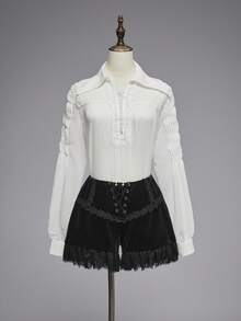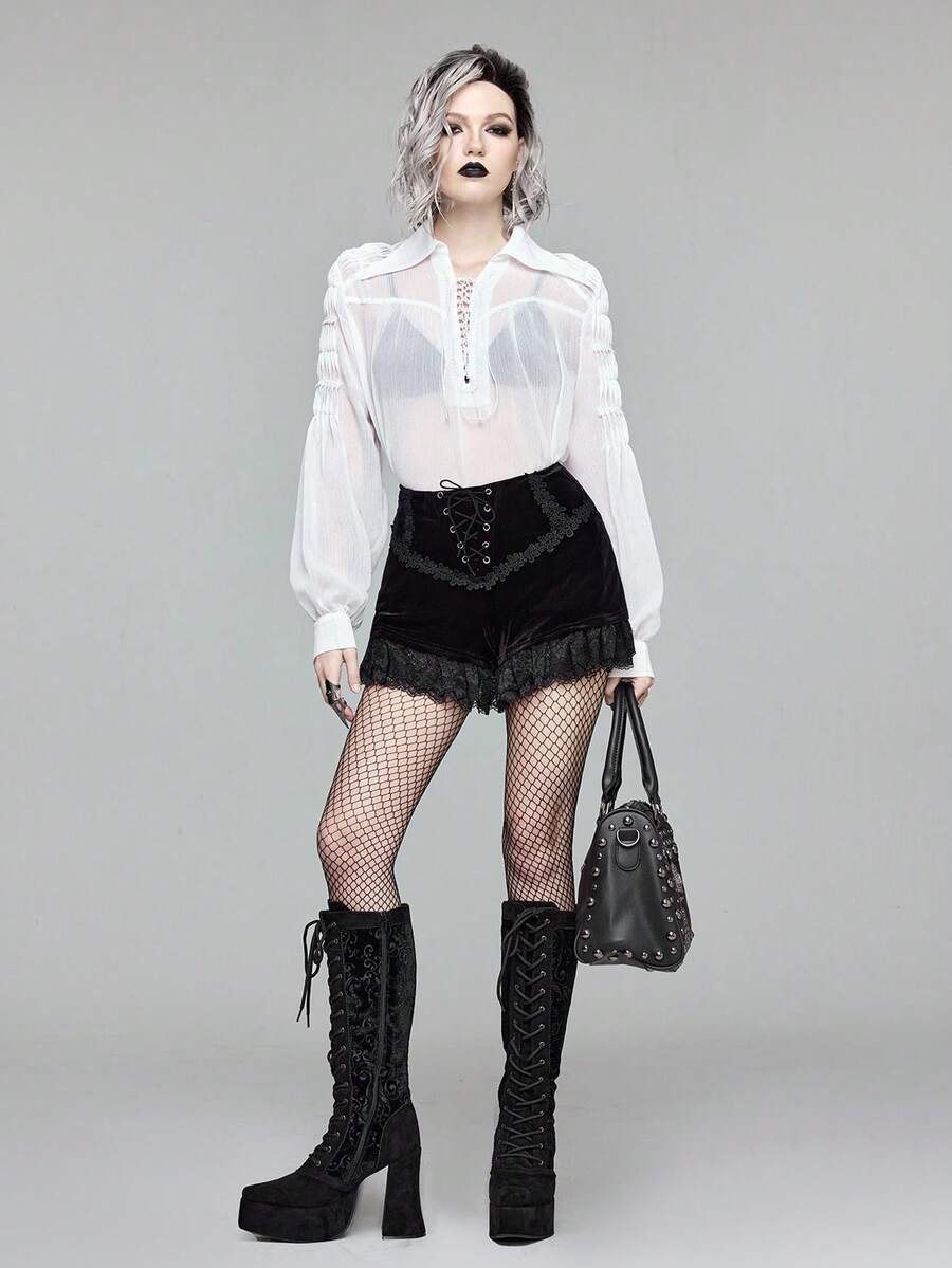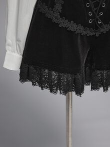 EDITION Gothic Lace Trim Velvet Women's Shorts, Dark Halloween Outfit