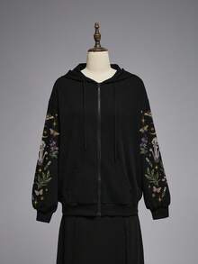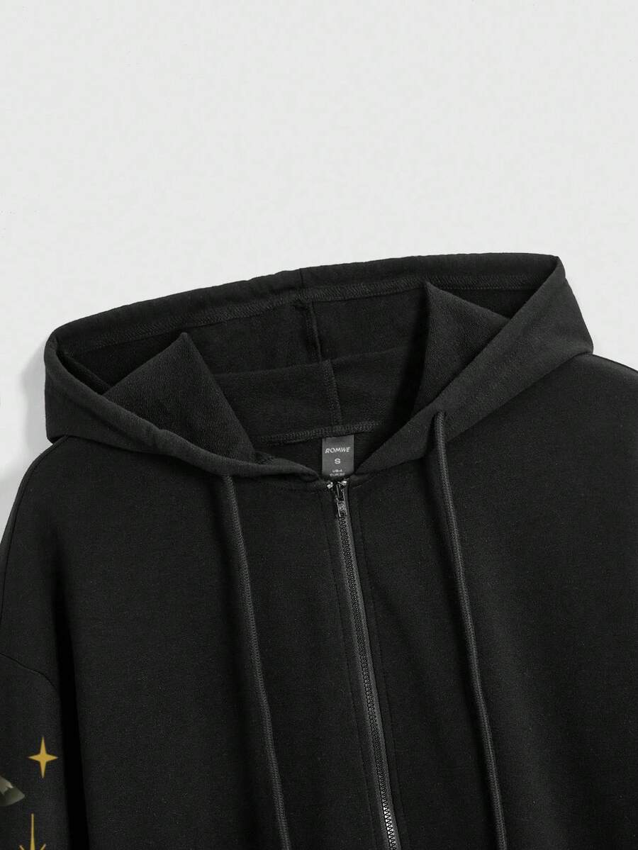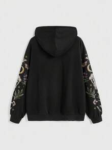 Goth Gothic Moth & Butterfly Garden Day & Night Mushroom Print Zip-Up Hoodie With Pockets For Women