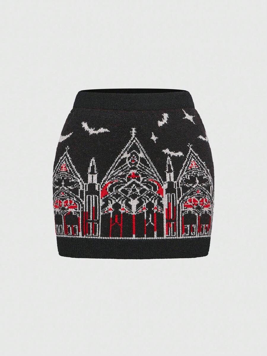 Goth Gothic Palace Castle Church Pattern Knitted Bodycon Mini Skirt