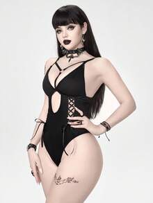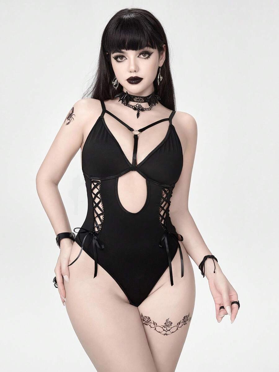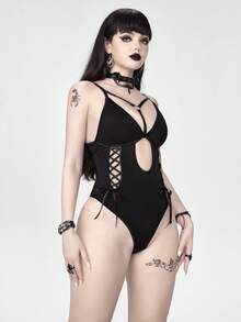 Gothic Style Heart Metal Buckle Side Lace-Up Sexy Bodysuit