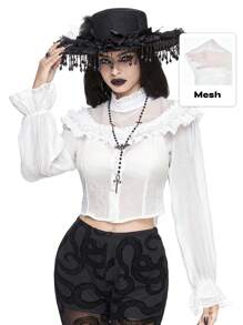 Gothic Style Ruffle Puff Sleeve Sheer Panel Blouse Top For Women