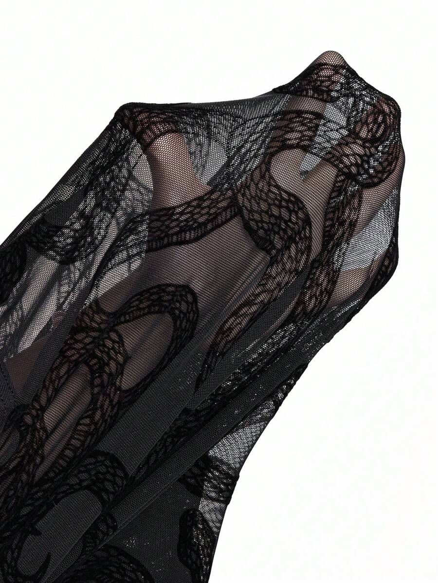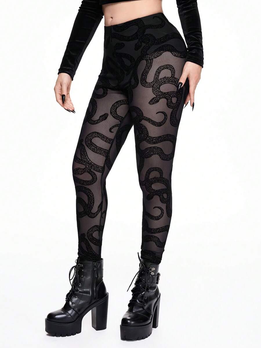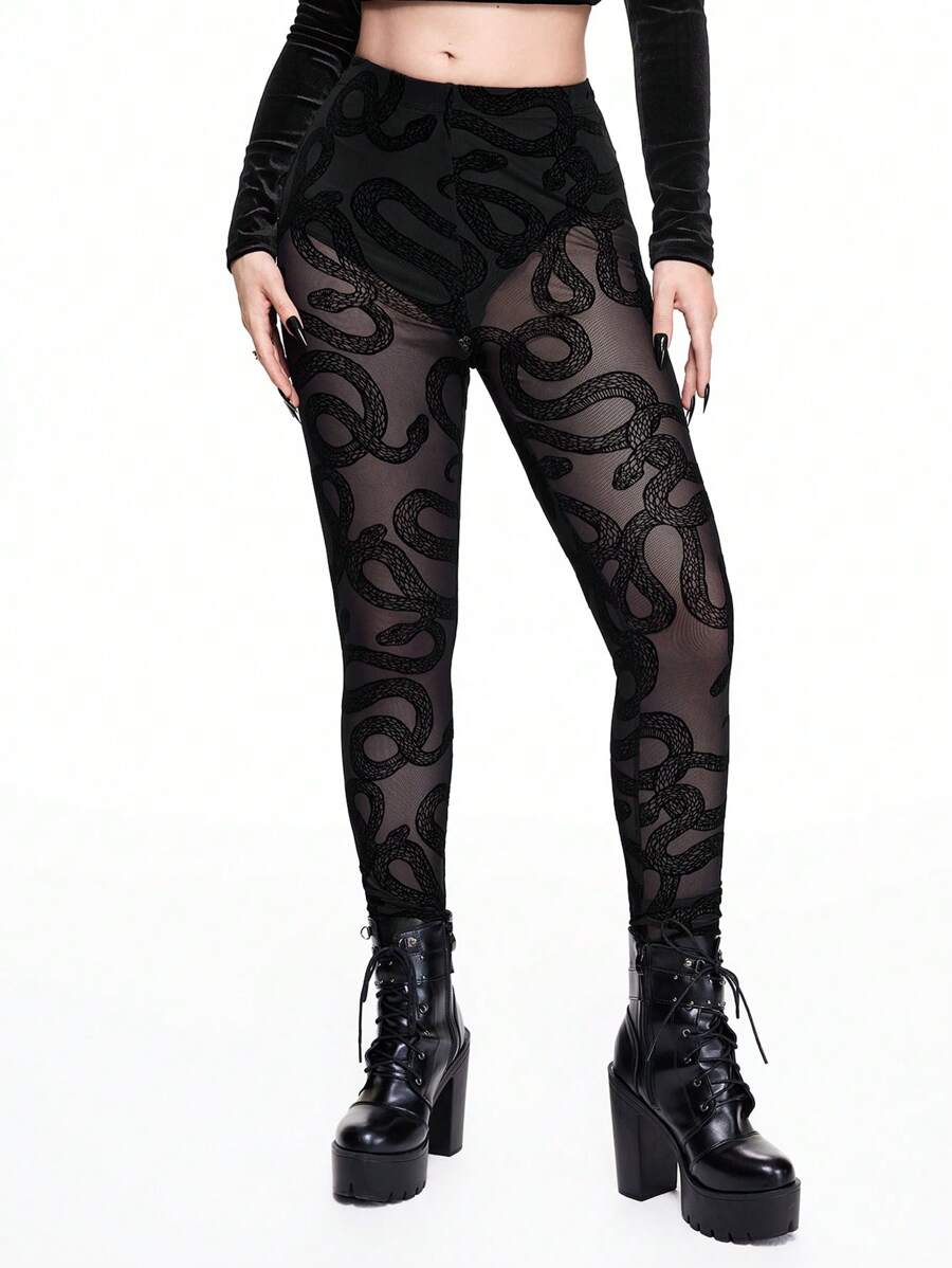 Gothic Style Snake Skin Flocked Sexy Sheer Leggings For Women