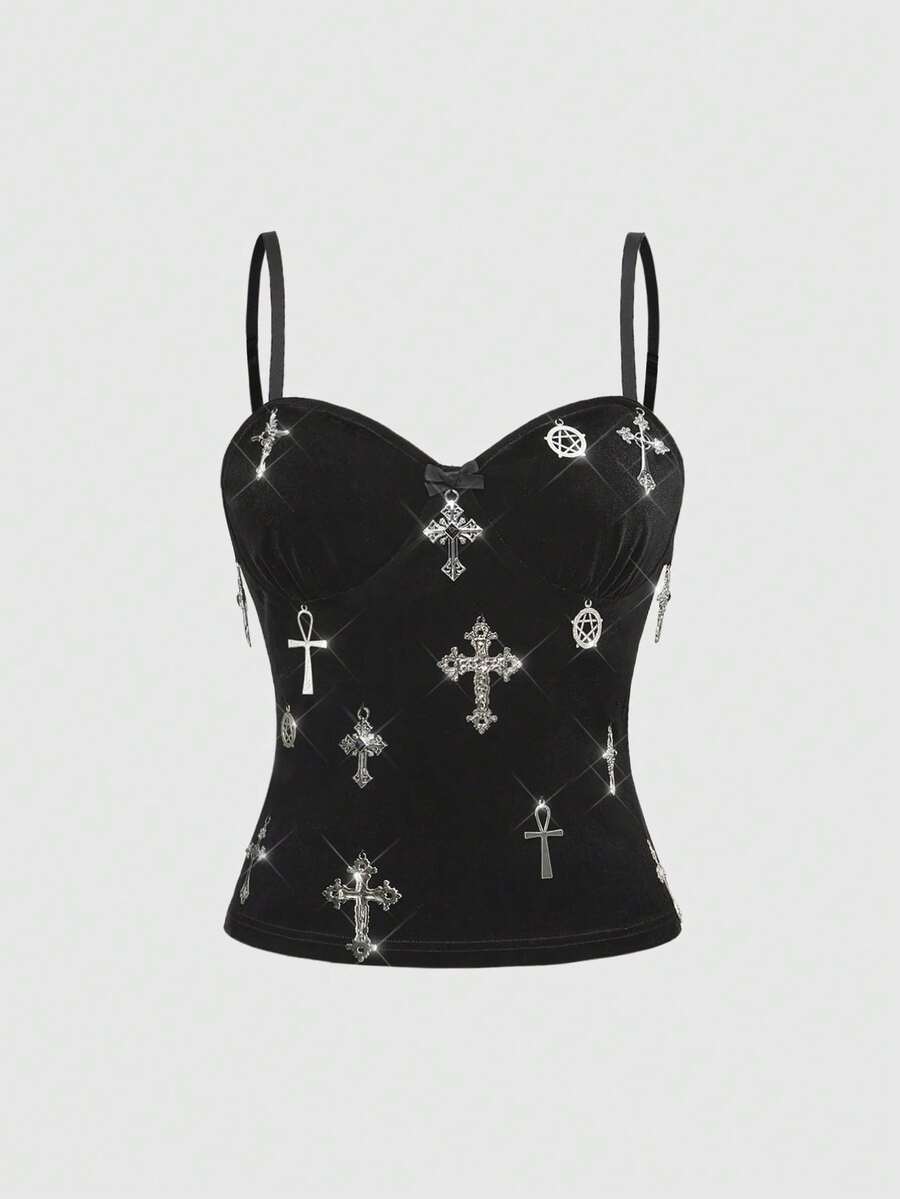 Goth Gothic Velvet Cross & Bowknot Camisole For Women