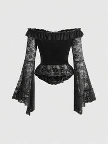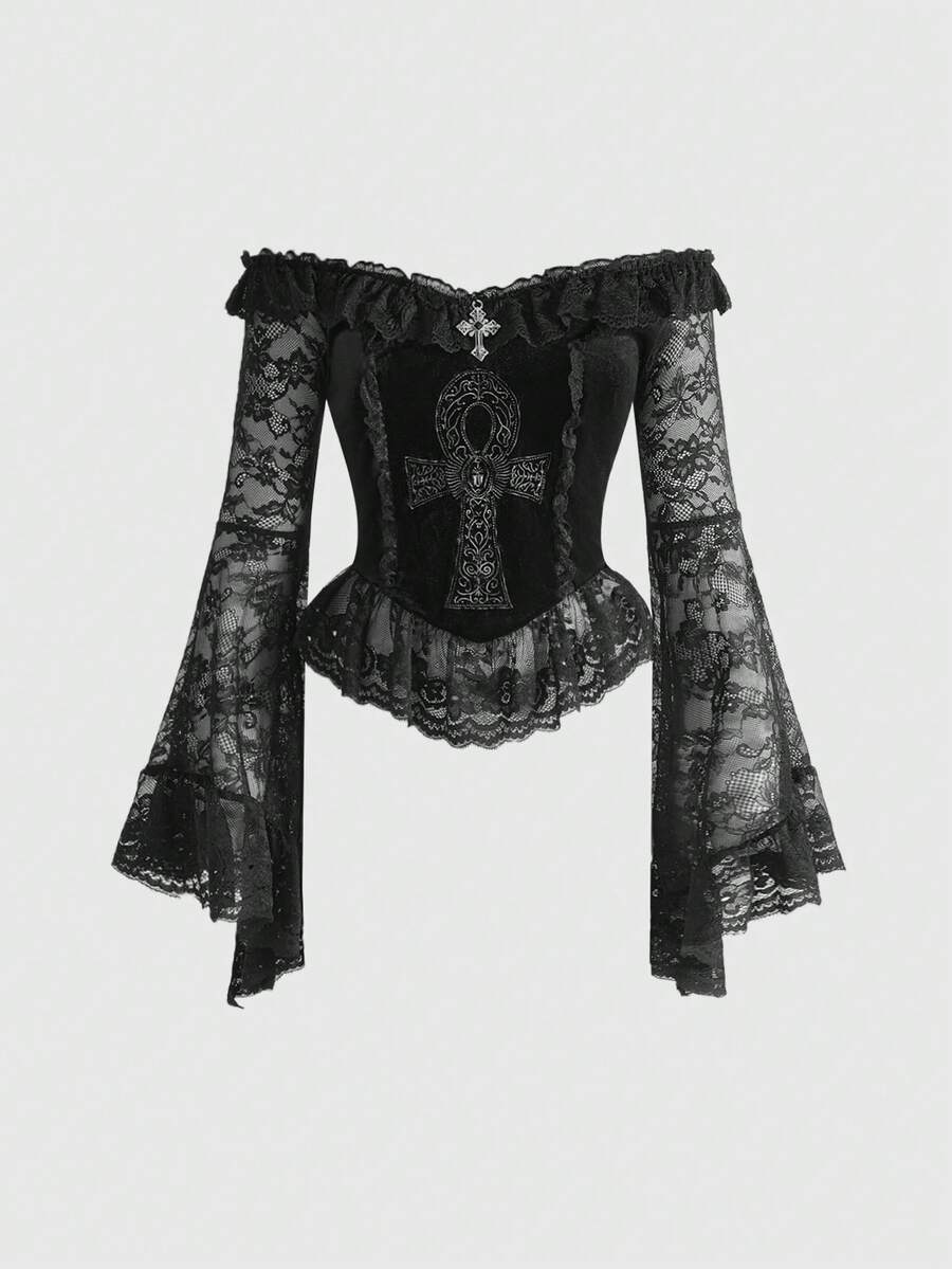 Gothic Vintage Palace Style Off Shoulder Romantic Lace Patchwork Cross Embroidery Blouse