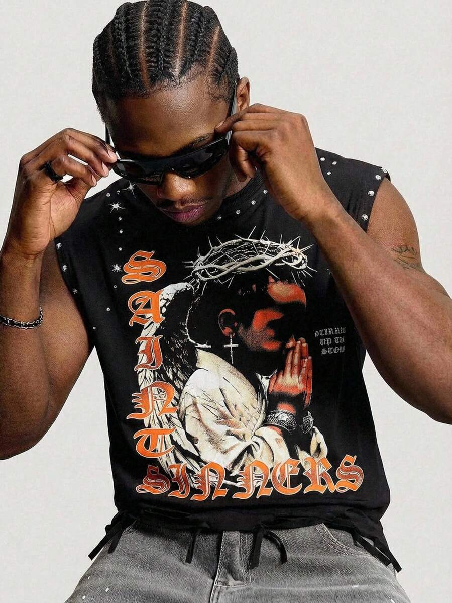 Graphic Print Glitter Distressed Tank Top For Toddler Boys