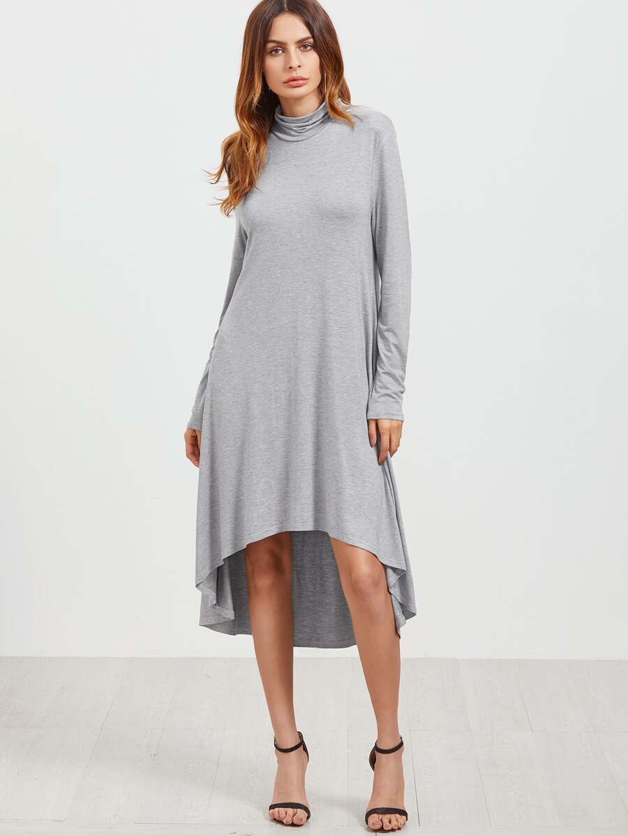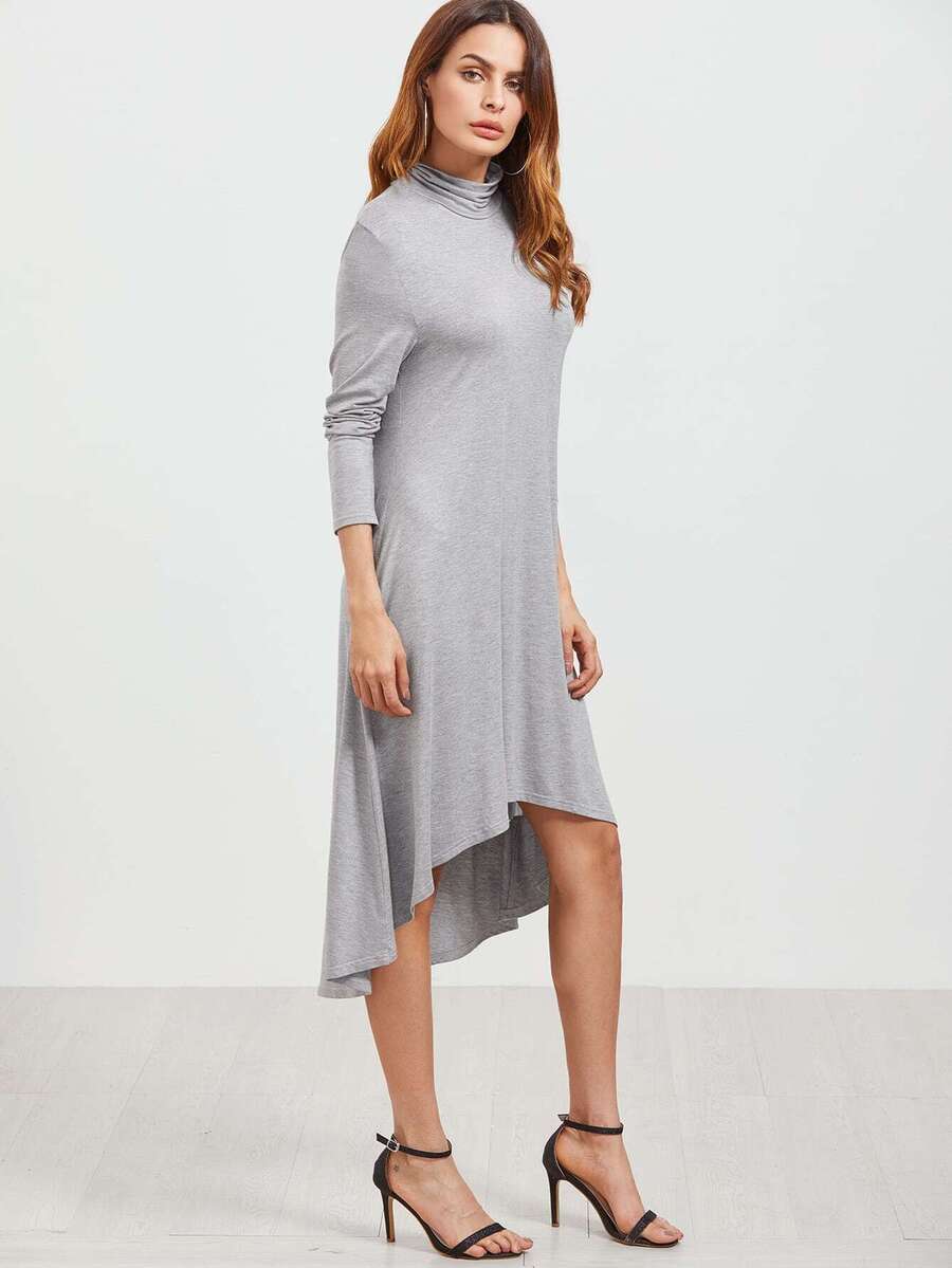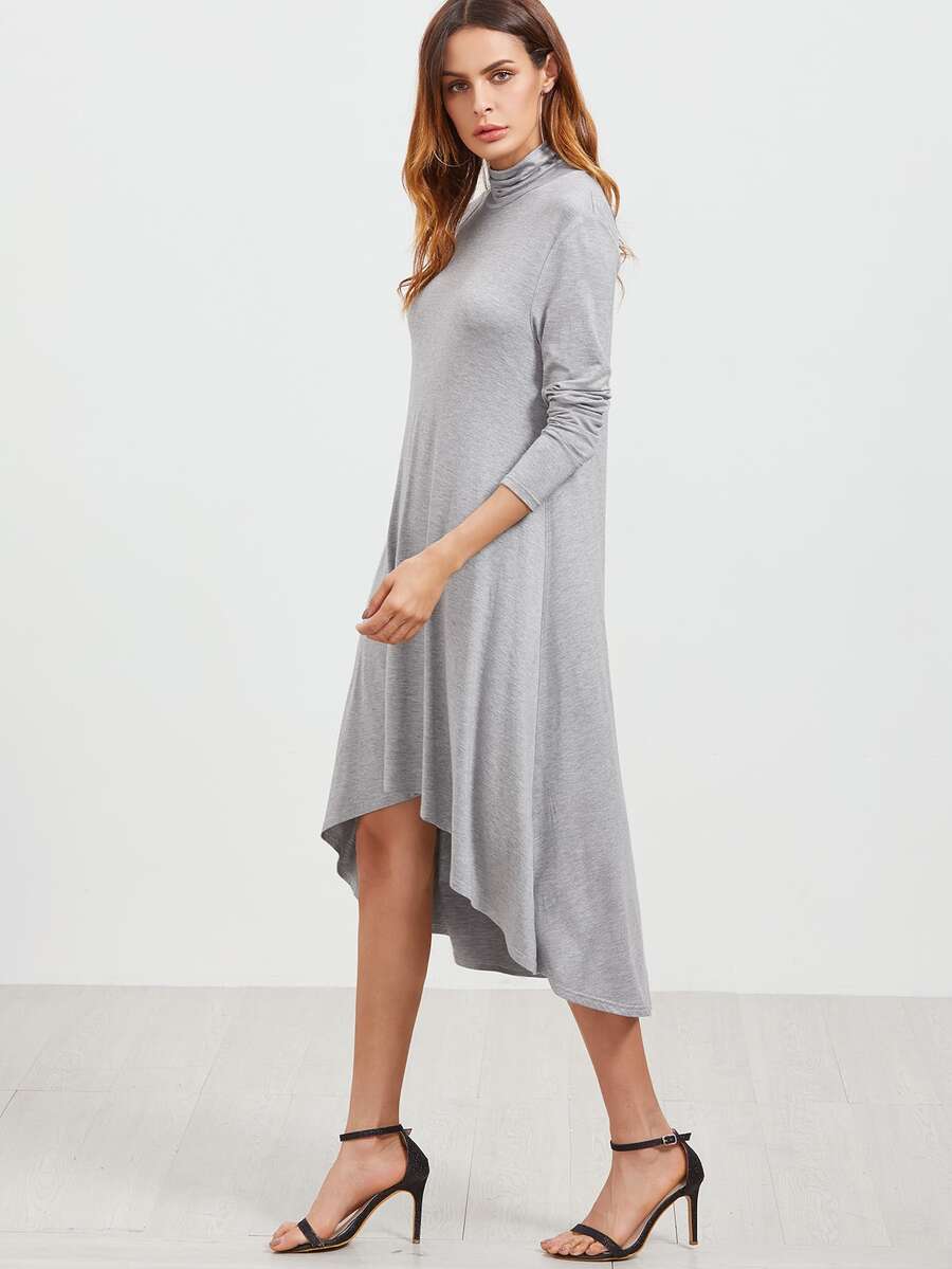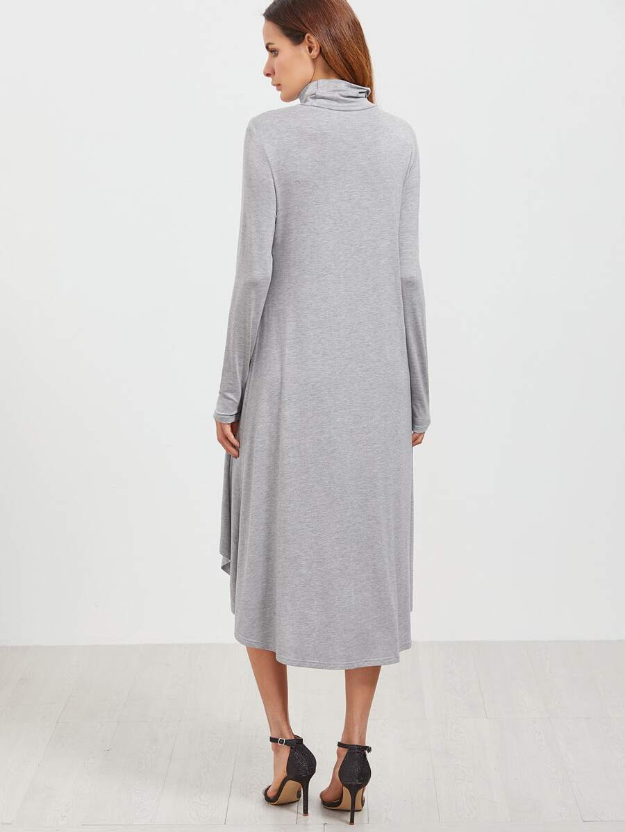 Grey Cowl Neck High Low Swing Dress