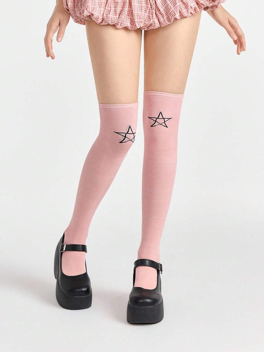 Grunge Punk 1 Pair Dark Gothic Five-Pointed Star Solid Color Crew Socks