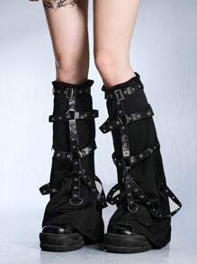 Grunge Punk 1 Pair Punk Style Leg Warmers, Goth Rock Ribbed Cuffs With Strap & Metal Buckles, Fashion Slim-Fit Design Suitable For Daily, Holiday And Party Wear
