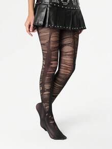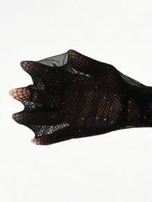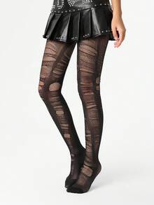 Grunge Punk 1 Pair Punk Style Rhinestone Fishnet Socks + 1 Pair Black Stockings, Y2K Baddie Style Set, Suitable For Everyday Street Fashion