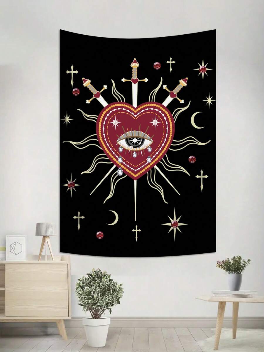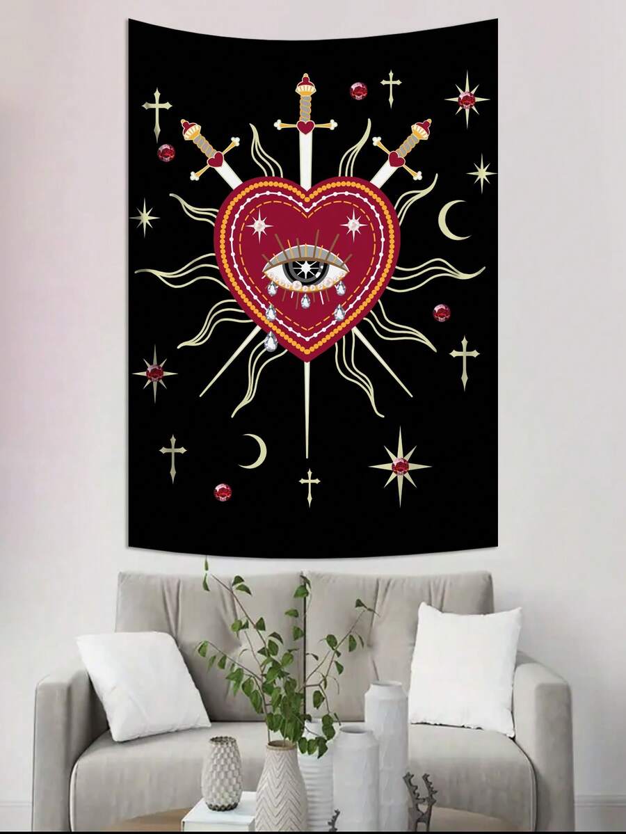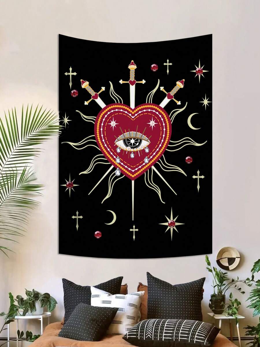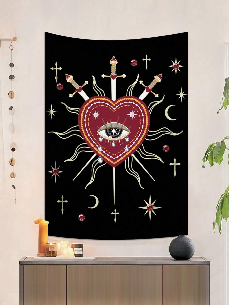 Grunge Punk 1 Pc Heart-Shaped Wall Hanging Tapestry, Suitable For Living Room And Bedroom