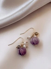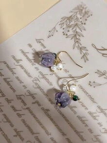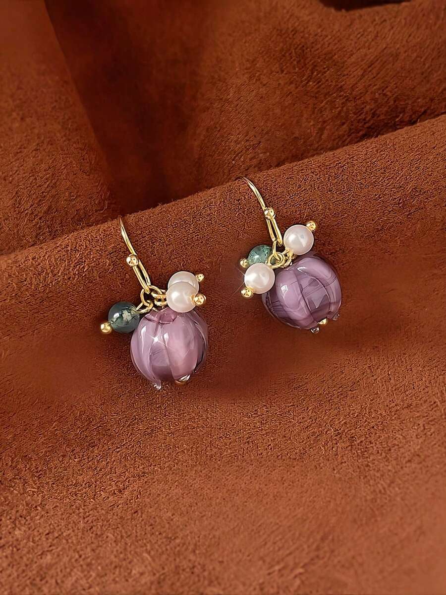 Grunge Punk 1pair Glass Lotus Shaped Earrings