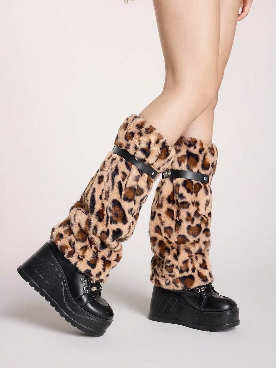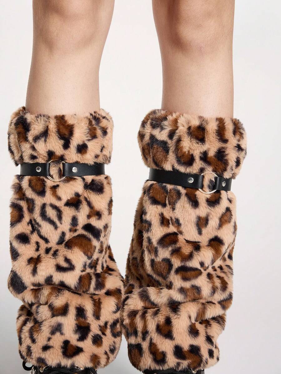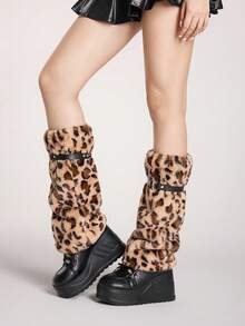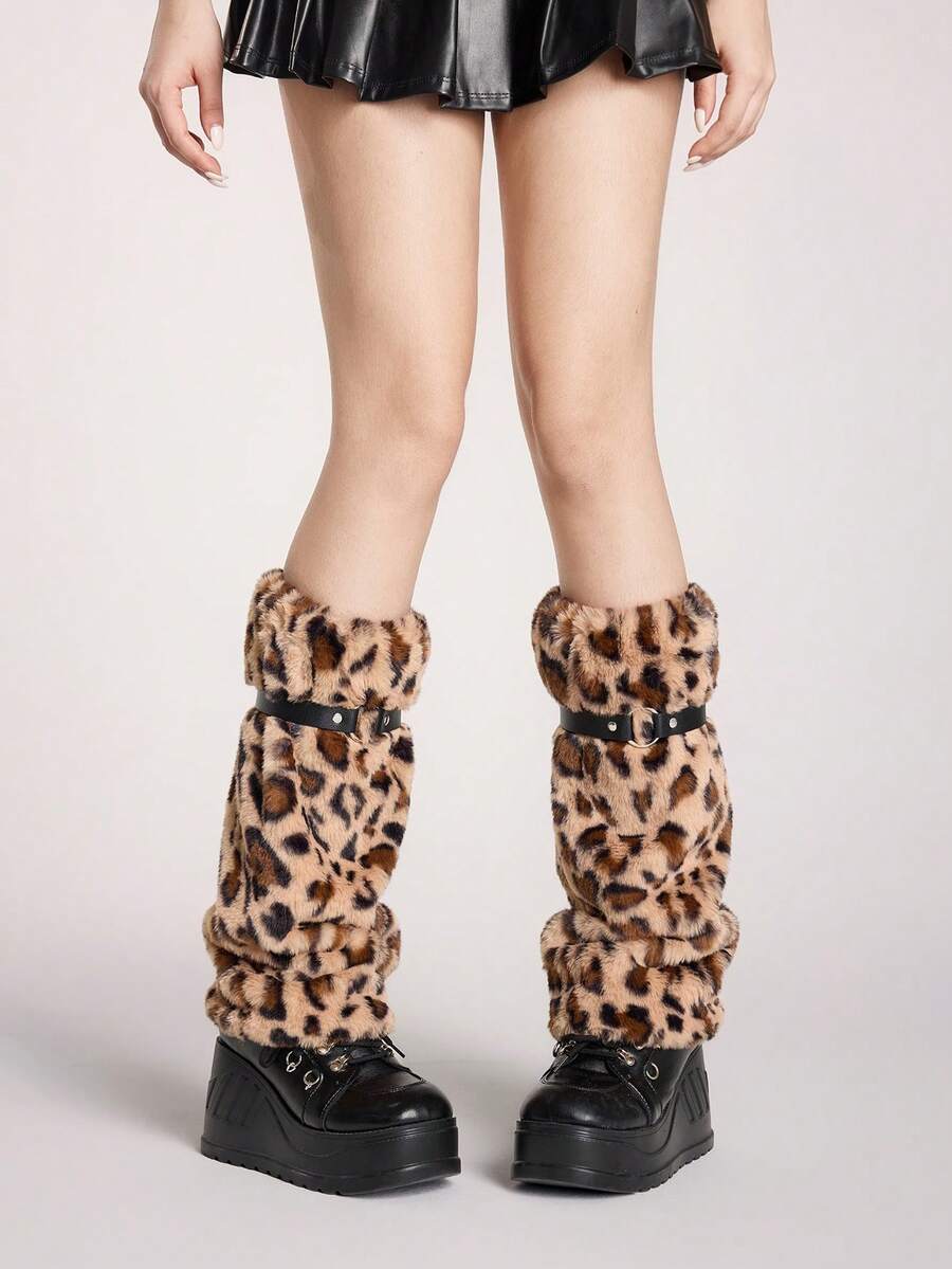 Grunge Punk 1pair Leopard Print Stylish And Warm Leg Warmers For Women