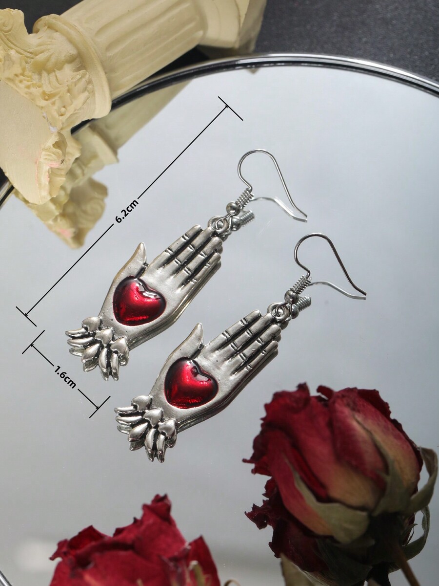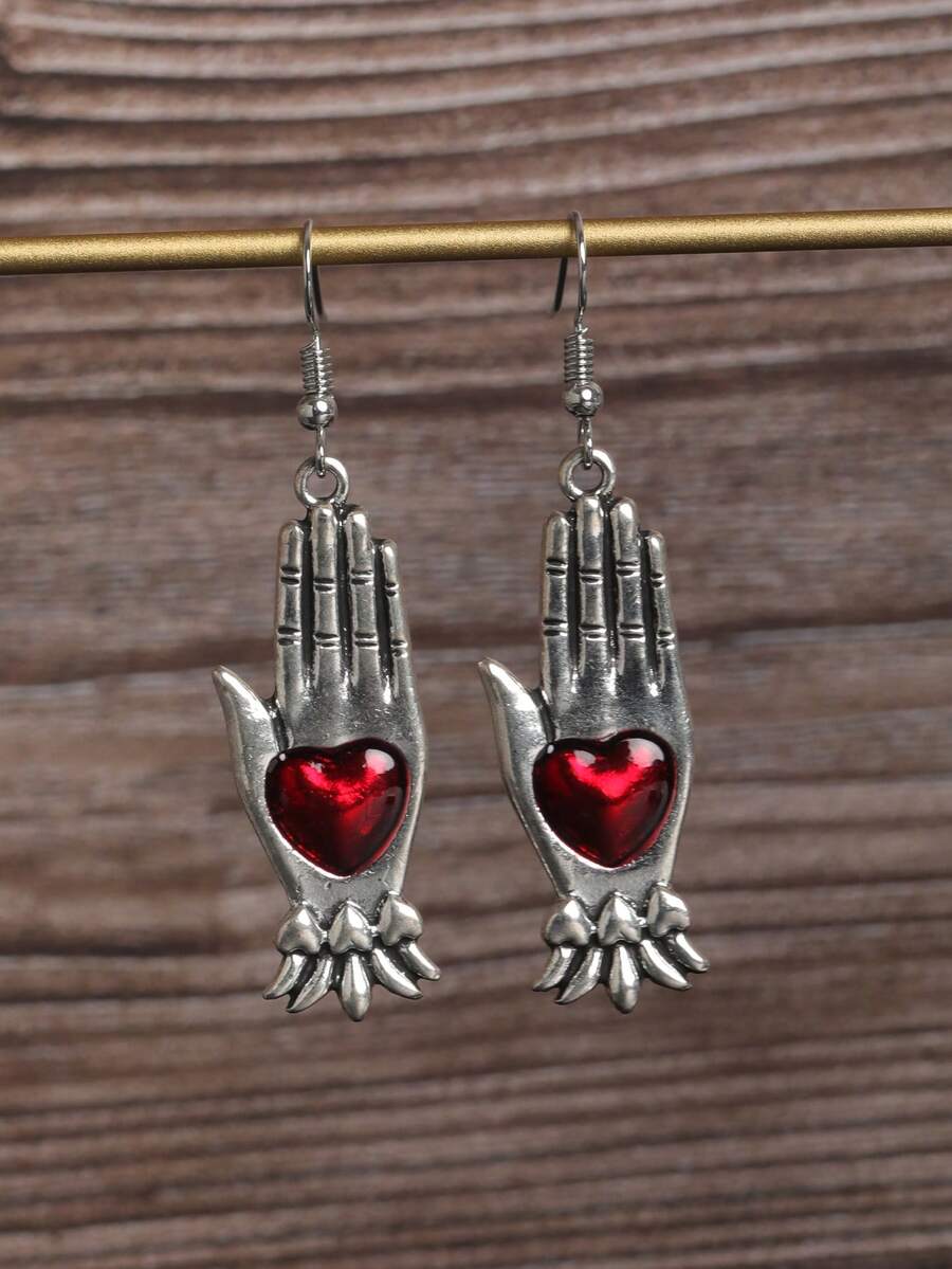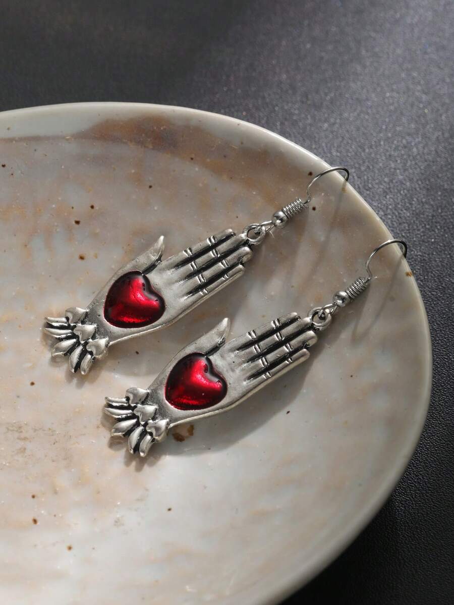 Grunge Punk 1pair Punk Style Dark Heart & Hand Palm Shaped Metallic Earrings For Women