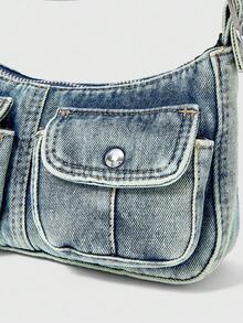 Grunge Punk 1pc Double Pocket Shoulder Bag With Faux Fur Tail Charm, Fashionable Personalized Vacation Style Women Handbag (Includes 1 Bag And 1 Set Of Accessories)
