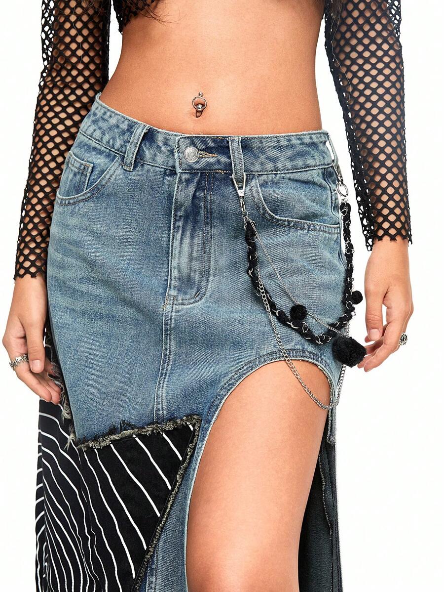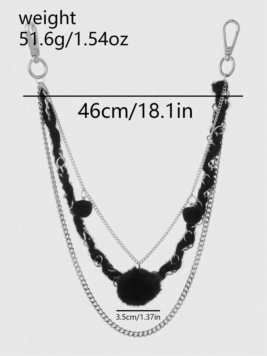Grunge Punk 1pc Fashion Gothic Style Hollow Chain Black Fluffy Ball Pendent Pants Chain For Women, & Suitable For Daily Wear, Perfect Gift