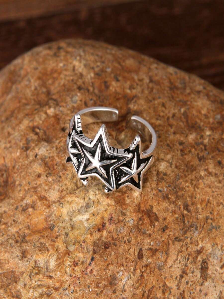Grunge Punk 1pc Fashion Star Decor Cuff Ring For Women