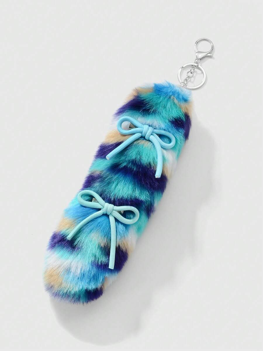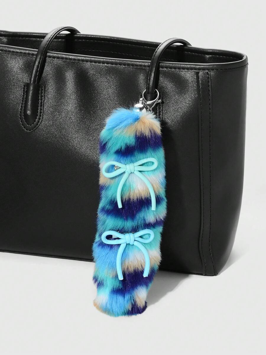 Grunge Punk 1pc Fashionable, Exquisite, High-Quality Blue Faux Fur Leopard Print Animal Tail With Bow Hair Clip, Versatile DIY Keychain/Bag Charm Accessory, Suitable For Women, Great For Daily Wear Or Gift