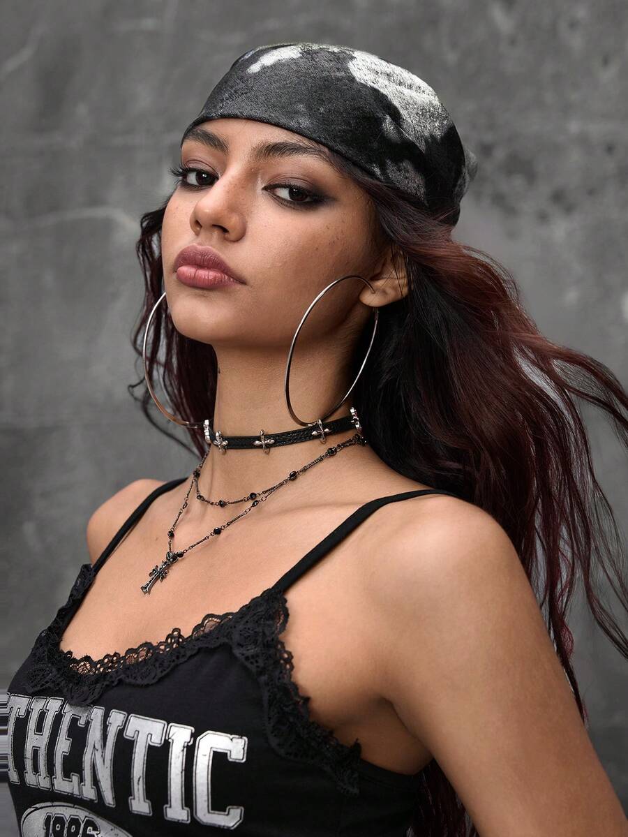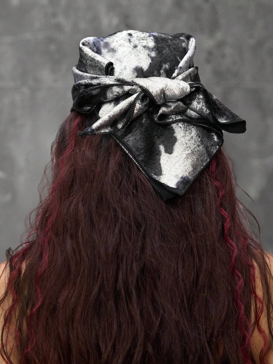 Grunge Punk 1pc Liquid Silver Sassy Girl Scarf, Women's Neckerchief, Y2K Style Square Scarf, Versatile Wear As Headband, Halter, For Men And Women