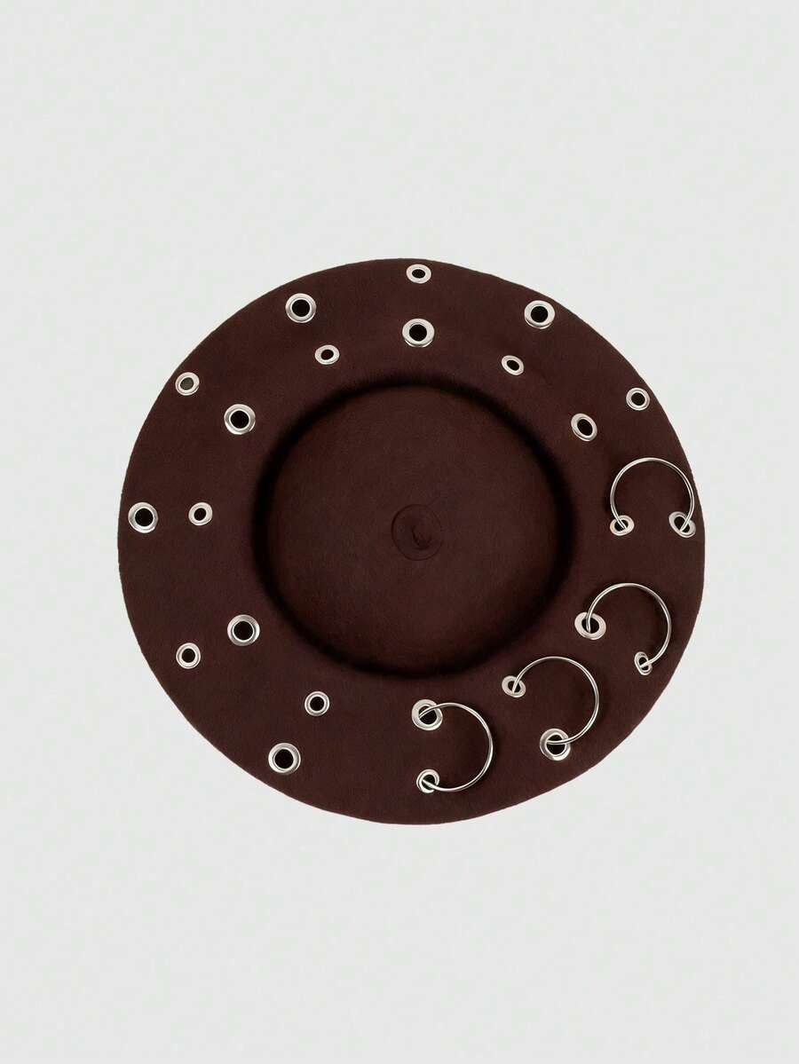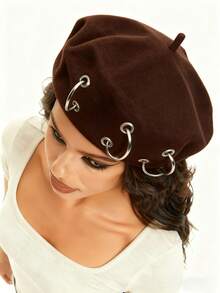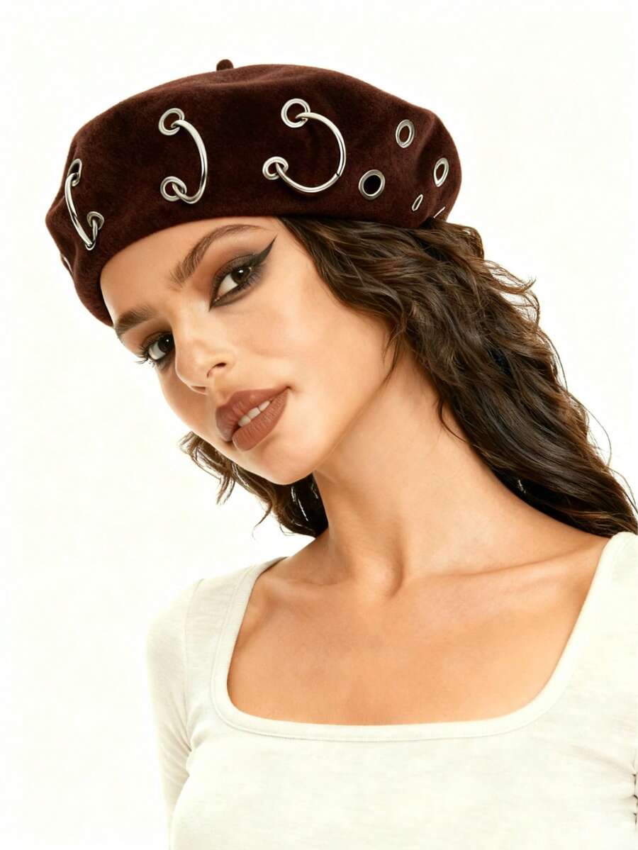 Grunge Punk 1pc Punk Style Circular Hollow Rivet Beret Hat, Y2K Round Pendant Newsboy Cap, Daily Personalized Fashion Item