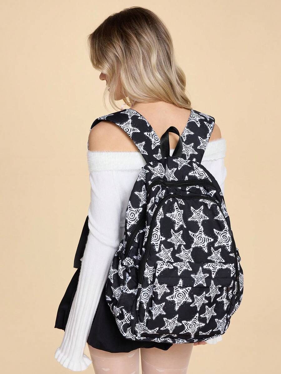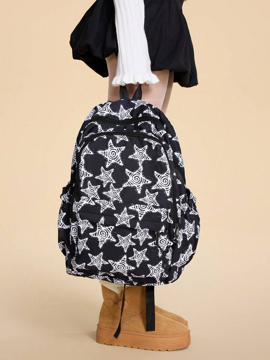 Grunge Punk 1pc Versatile Five-Pointed Star Pattern Large Capacity Black Backpack, 3-Layer Storage Laptop Backpack, Outdoor Travel Backpack, Student Backpack