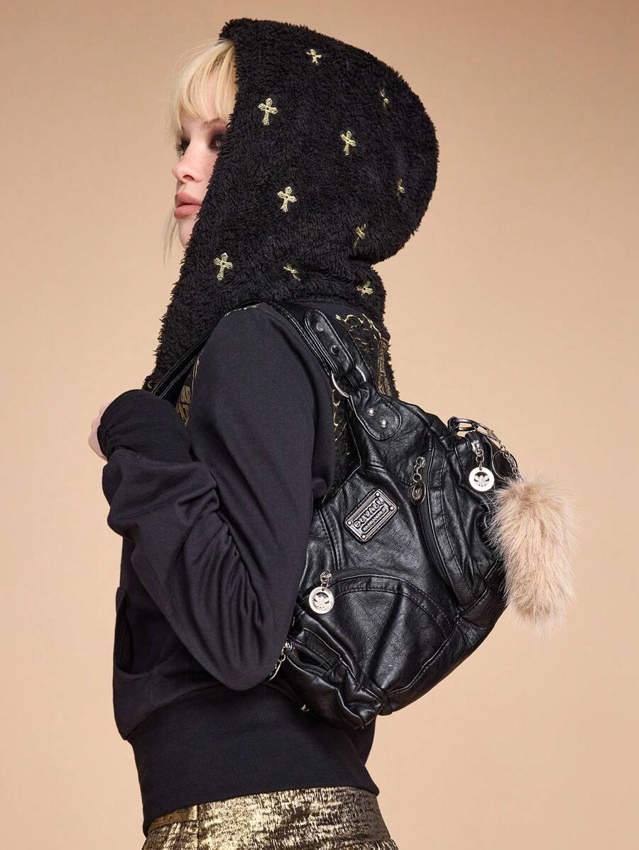 Grunge Punk 1pc Vintage Fancy Fashionable & Cute High-Chic Brown Plush Faux Animal Tail Keychain, Keyring, Bag Charm, Suitable For Women, Daily Wear Or Holiday Gift