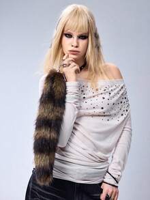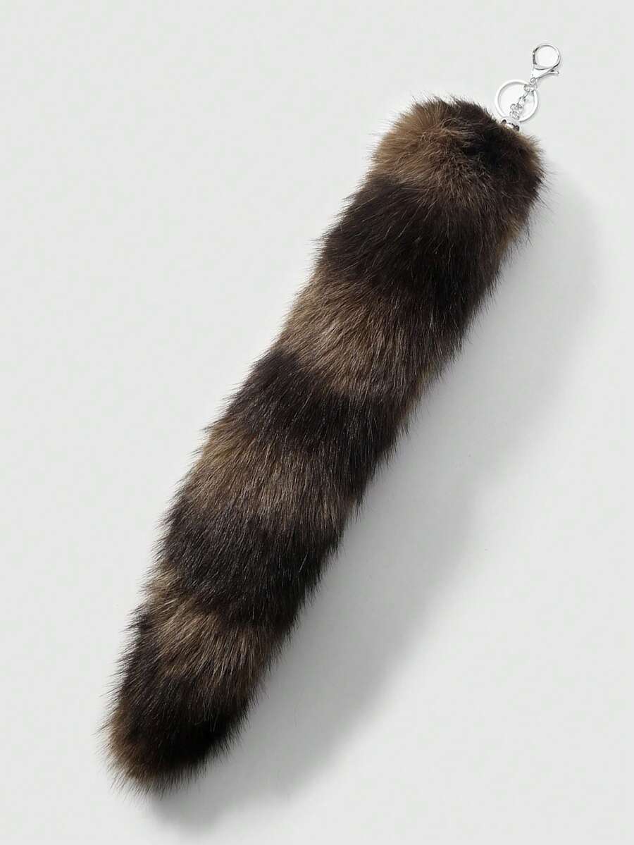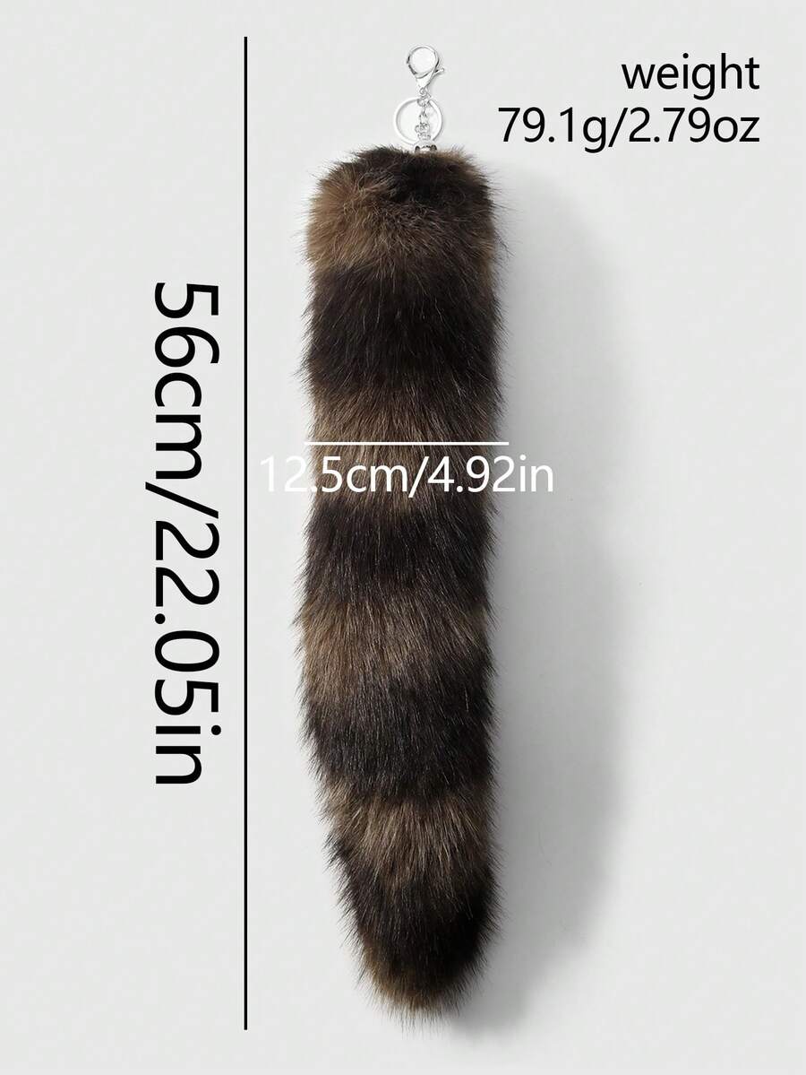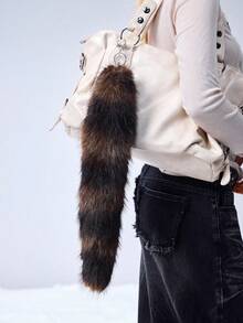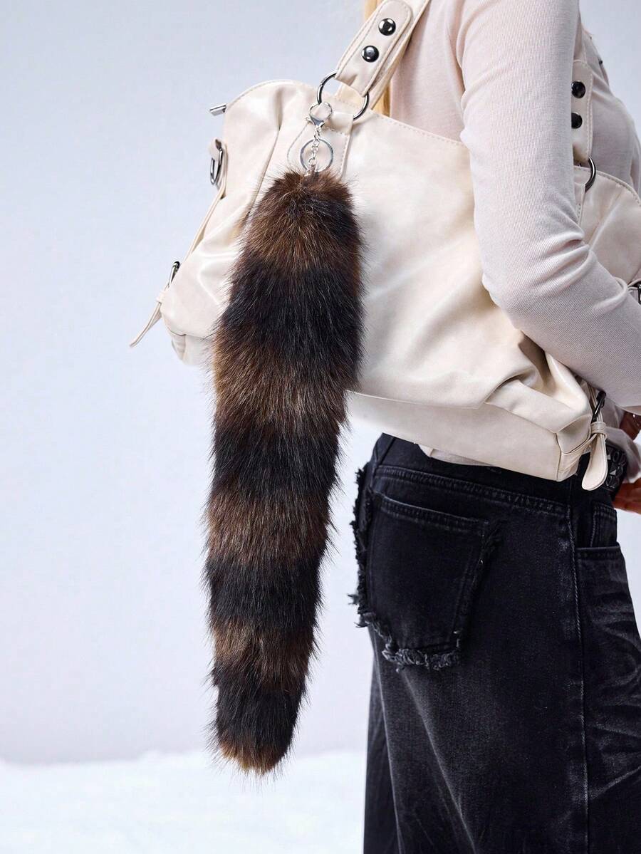 Grunge Punk 1pc Vintage Gothic Black And White Plush Faux Fox Tail Keychain, Versatile Accessory Suitable As Gift For Women, Daily Wear And Festivals