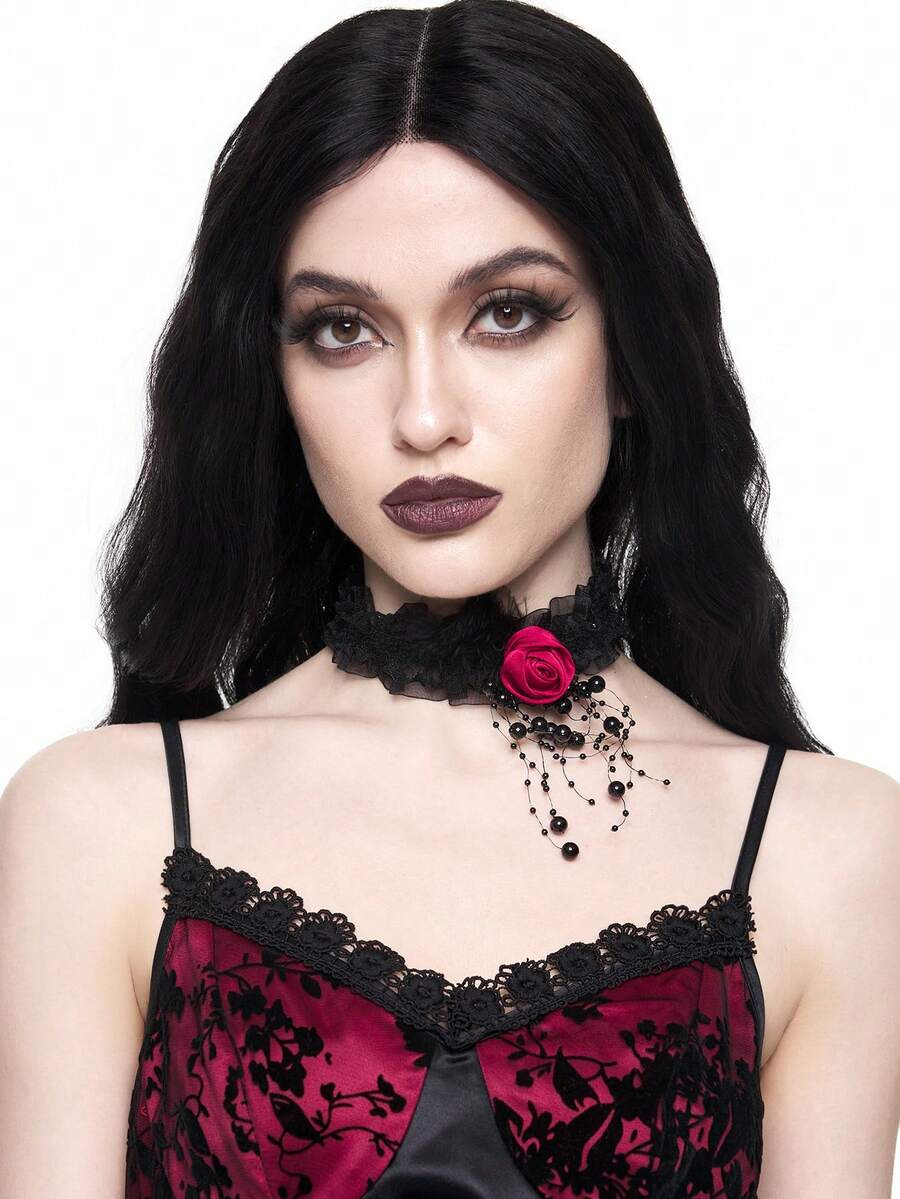 Grunge Punk 1pc Women Lace Rose Necklace, Suitable For Everyday Wear