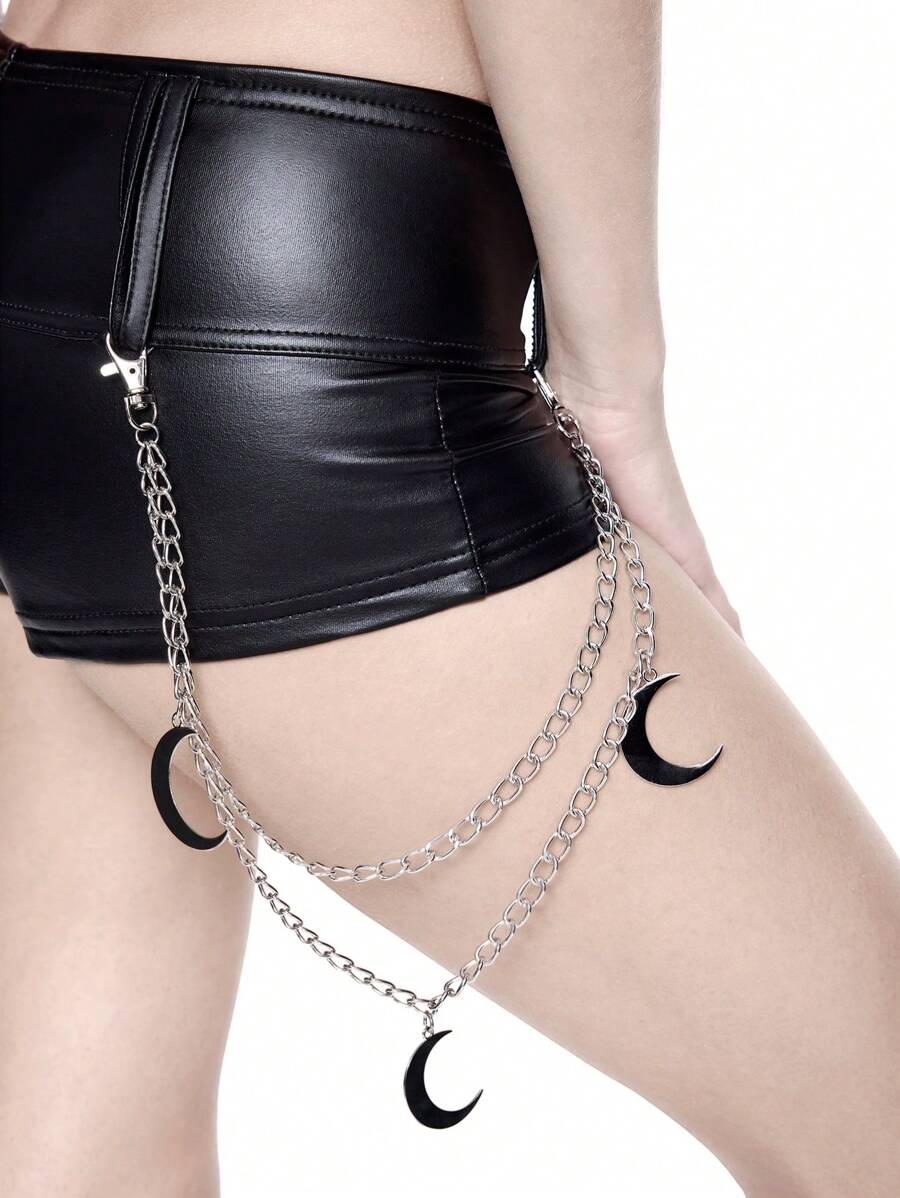 Grunge Punk 1pc Women Moon Decor Double Layer Chain Punk Style Pants Chain, Versatile Daily Wear