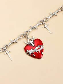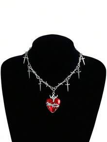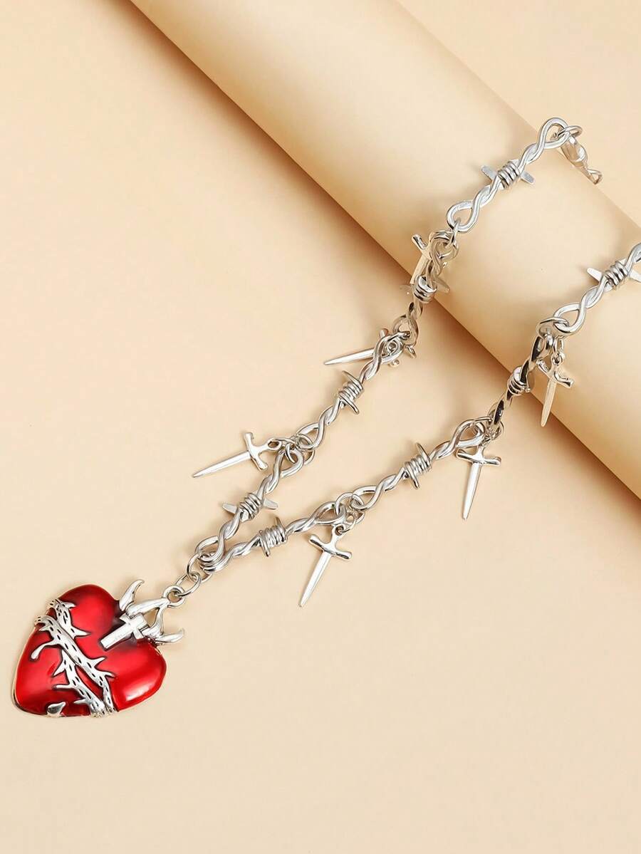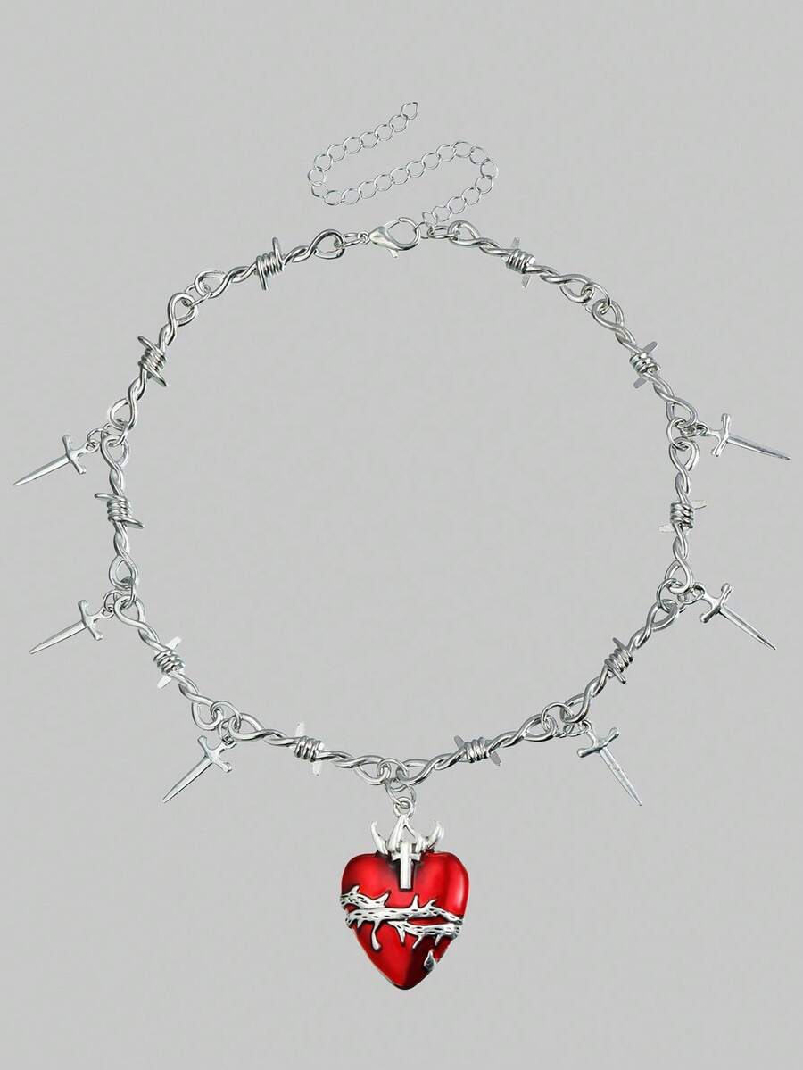 Grunge Punk 1pc Women's Minimalist Fashion Personalized Thorn Heart Pendant Necklace
