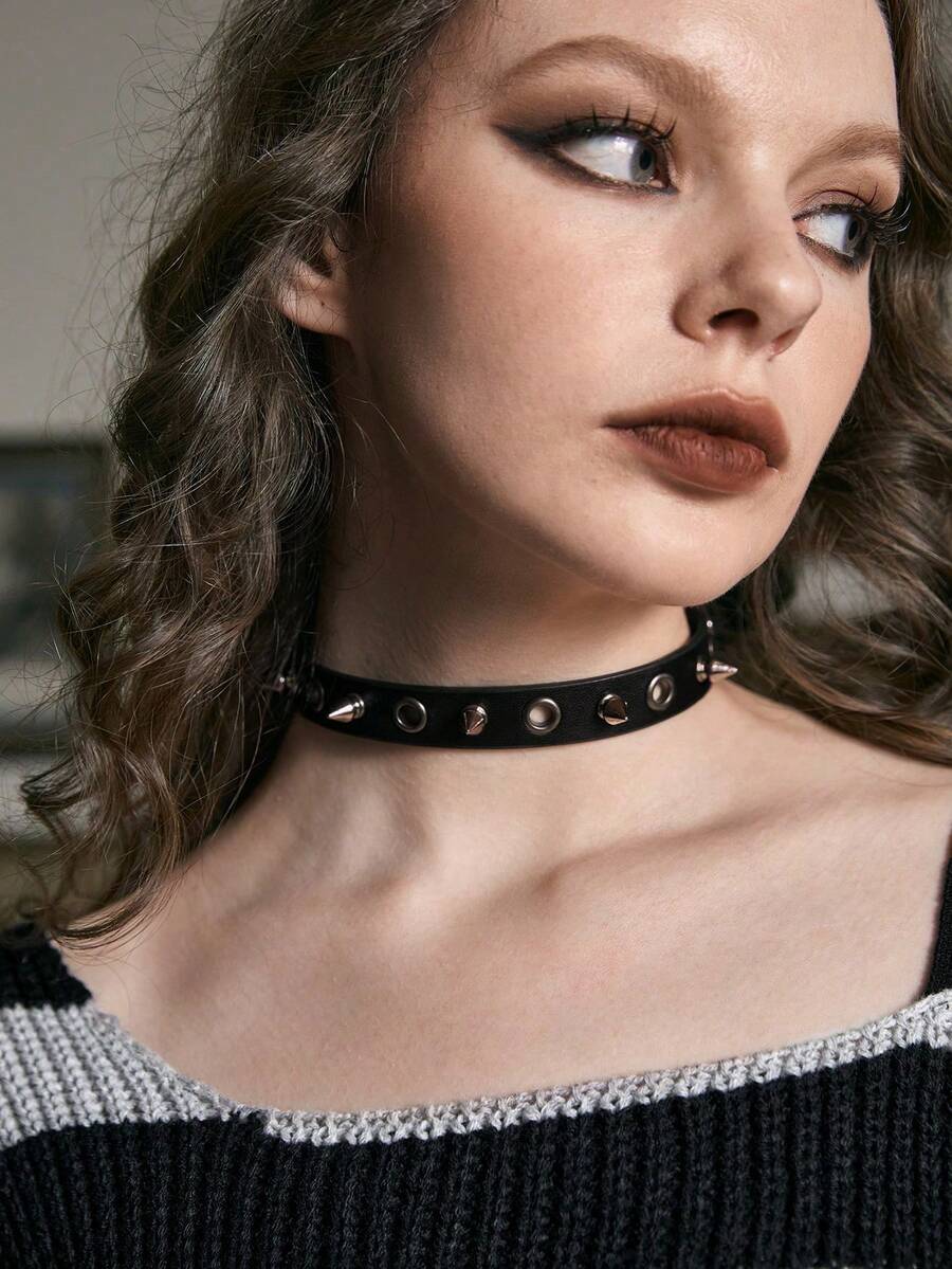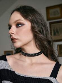 Grunge Punk 1pc Women's Spike Studded Eye Decorated Choker Necklace