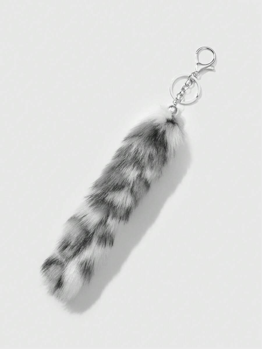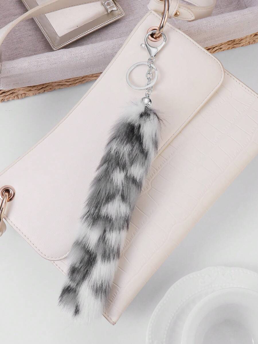 Grunge Punk 1pc Y2K Fashion Exquisite Retro Gothic Style Black & White Faux Fur Leopard Print Animal Tail Keychain & Keyfob, Bag Charm Decor, Suitable For Women, Ideal Gift