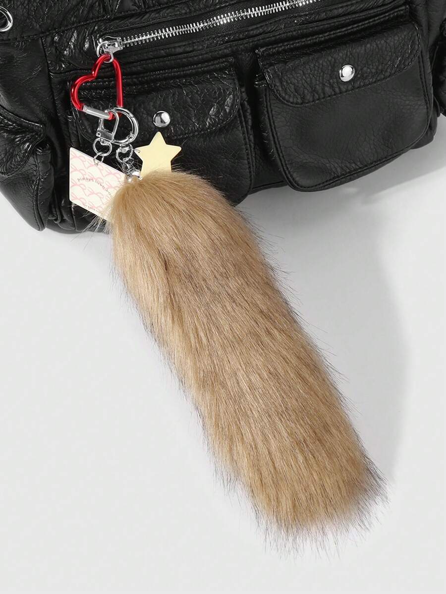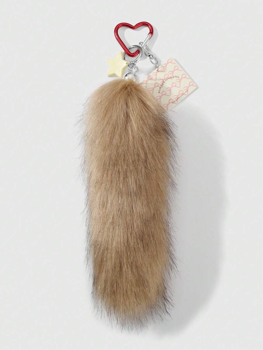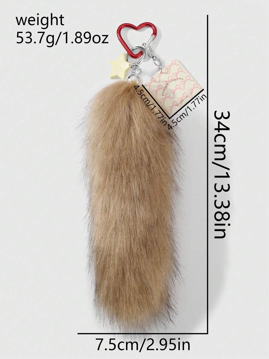 Grunge Punk 1pc Y2K Retro Fashionable High-End Acrylic Star Letter Tag, Gradient Brown Plush Faux Furry Fox Tail Keychain & Keyring, Bag Pendant Charm, Suitable For Women/Girls, Daily Wear Or Holiday Gift