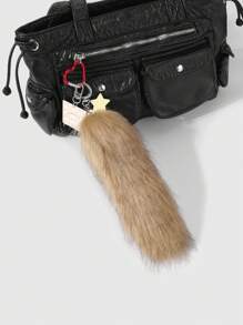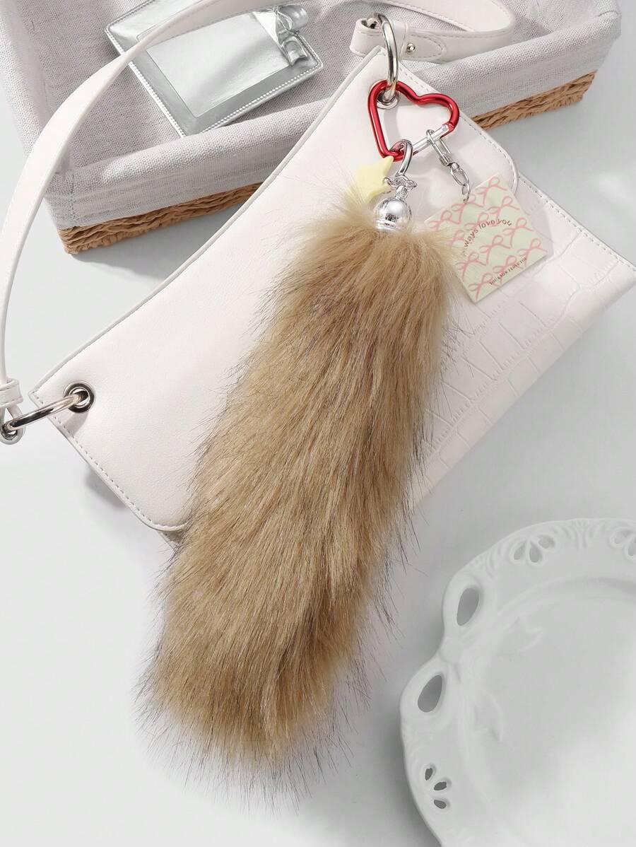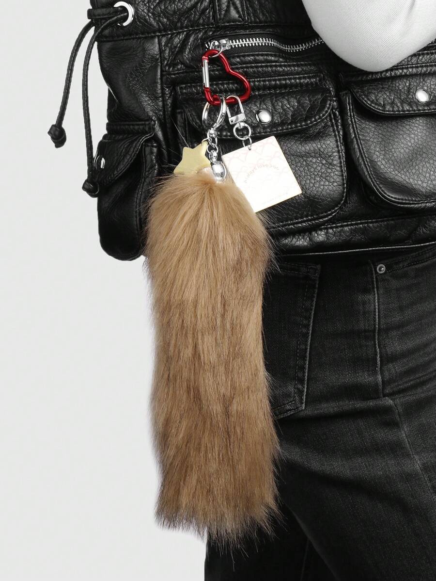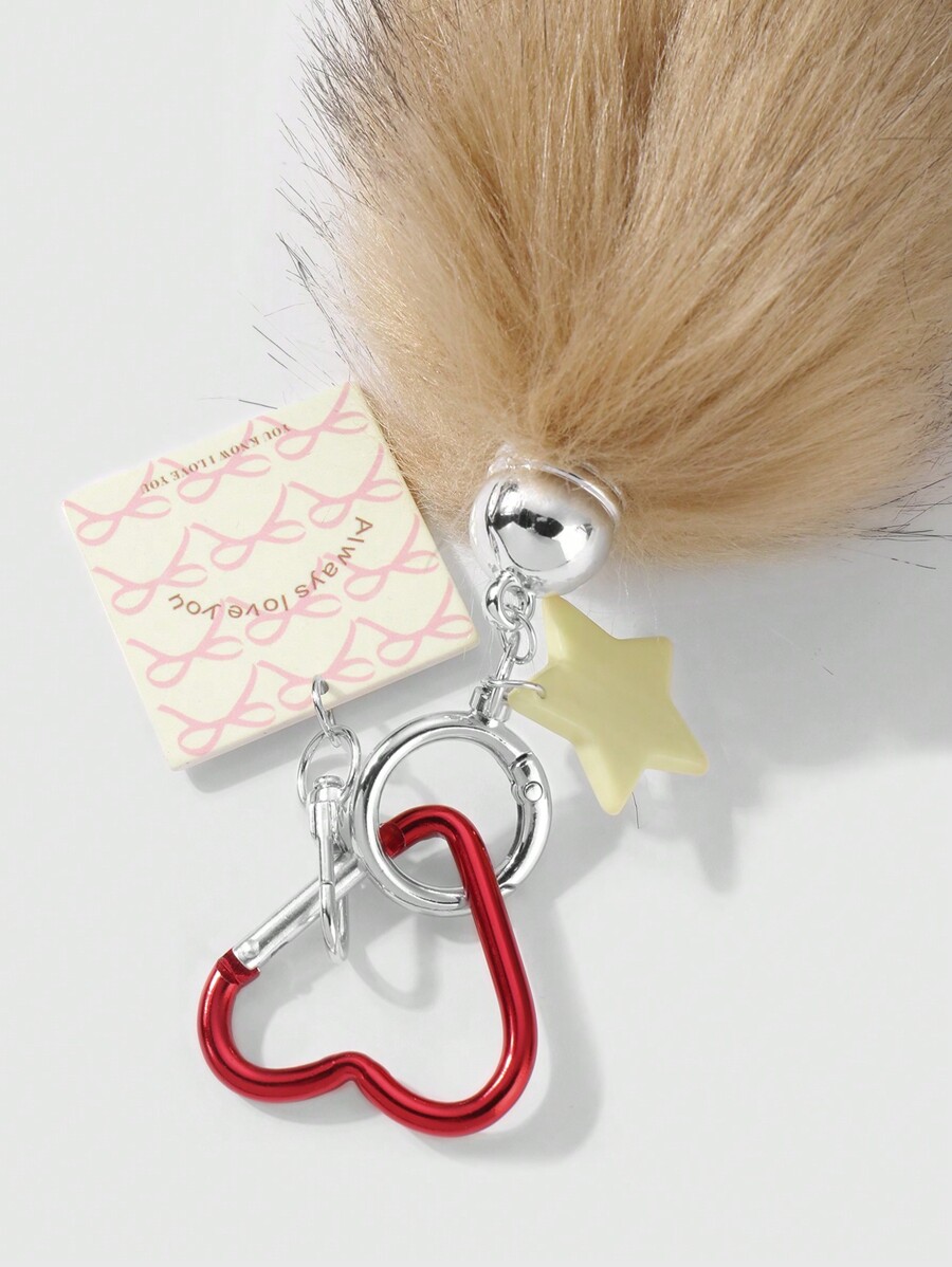 Grunge Punk 1pc Y2K Retro Fashionable High-End Acrylic Star Letter Tag, Gradient Brown Plush Faux Furry Fox Tail Keychain & Keyring, Bag Pendant Charm, Suitable For Women/Girls, Daily Wear Or Holiday Gift
