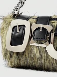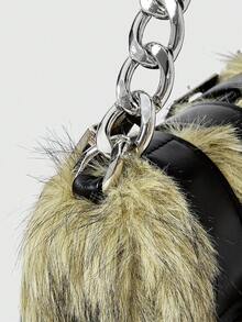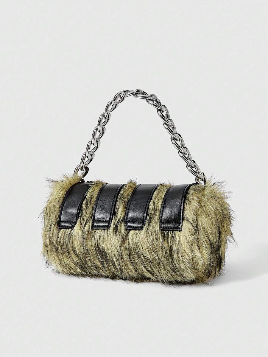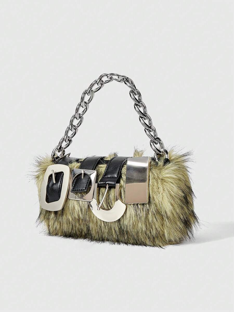 Grunge Punk 2000s Style Women Handbags,Punk Rivet Biker Bags,Metal Chain Bag,Fur Purse ,Autumn & Winter Wallets(Random Pattern)