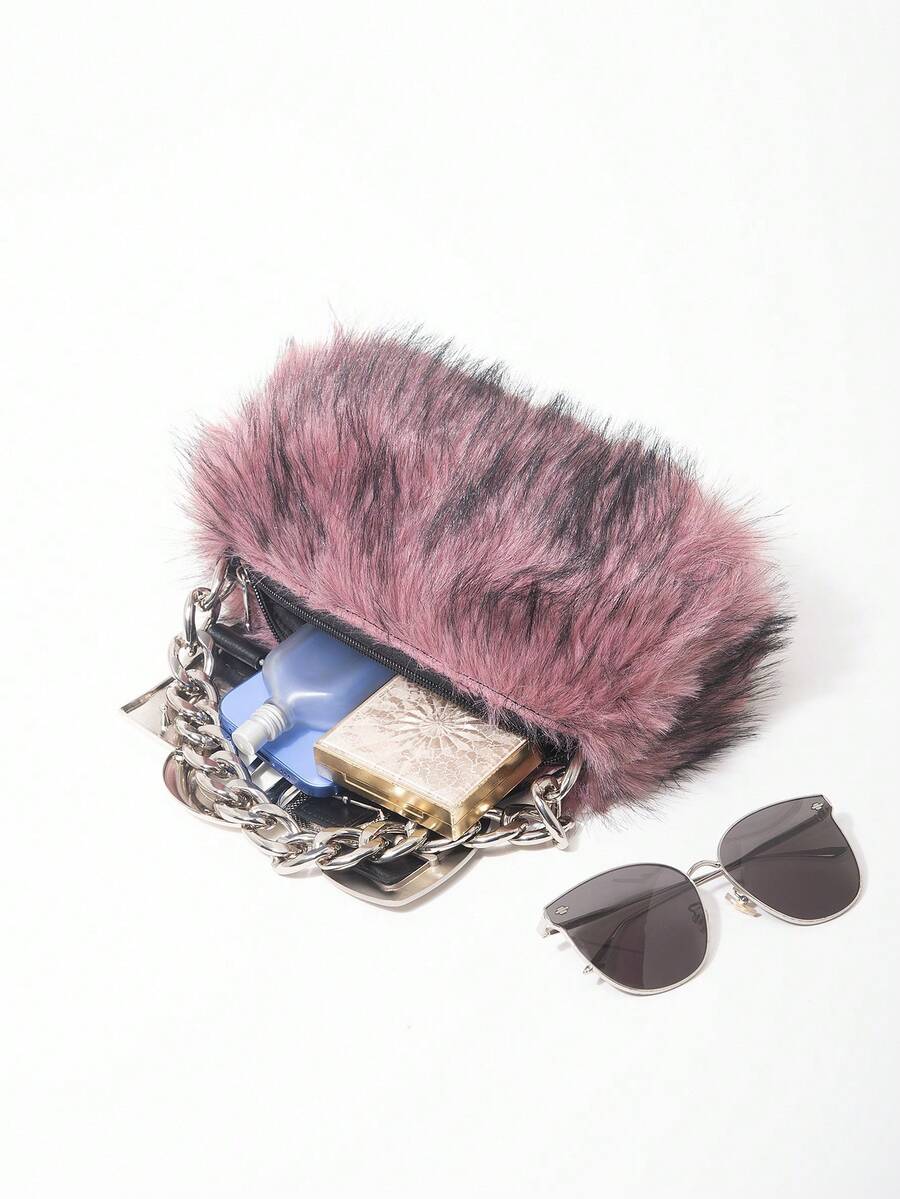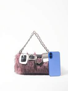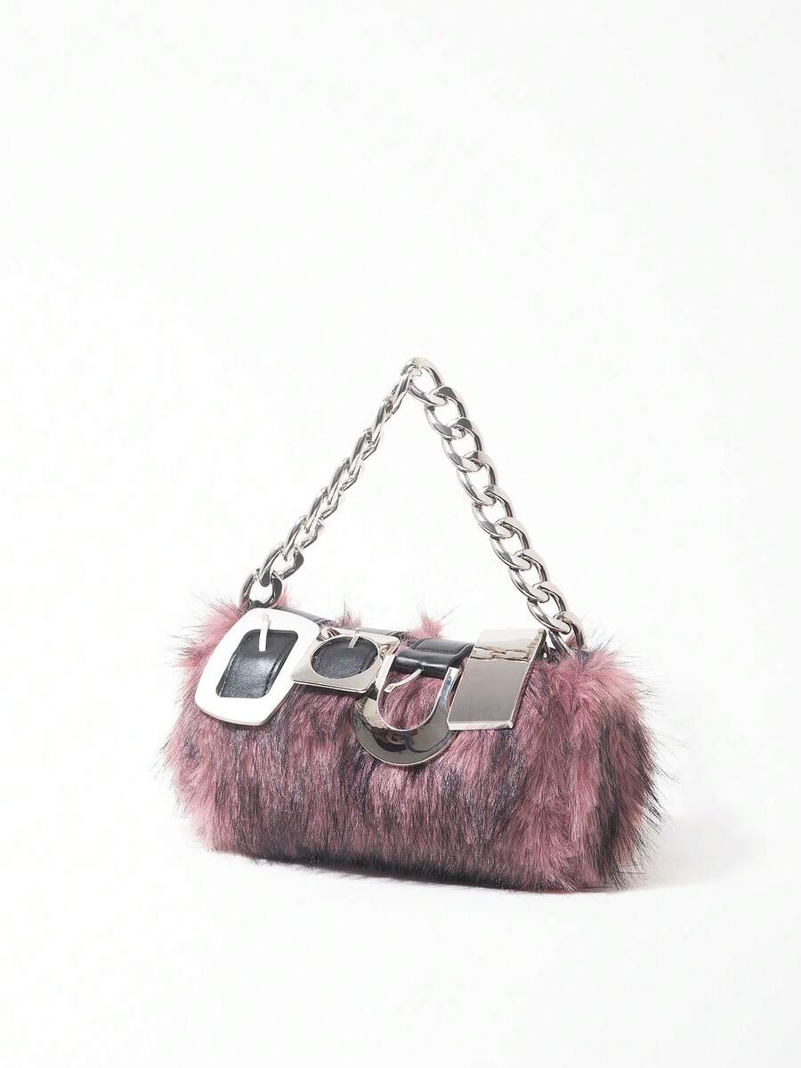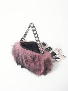 Grunge Punk 2000s Style Women Handbags,Punk Rivet Biker Bags,Metal Chain Bag,Fur Purse ,Autumn & Winter Wallets(Random Pattern)