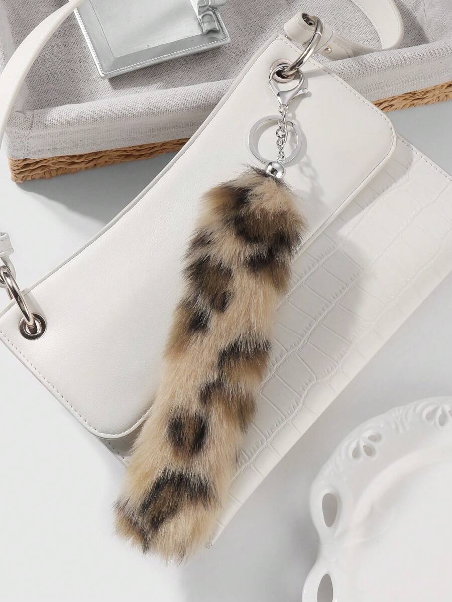 Grunge Punk 2pcs Y2K Chic Stylish Detailed Versatile Vintage Personalized Brown Leopard Print Fluffy Animal Tail Keychain Bag Pendant Combo Set, Suitable For Women Daily Wear, Festival Gift