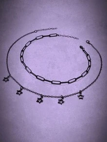 Grunge Punk 2pcs/set Black Star Pendant Necklace