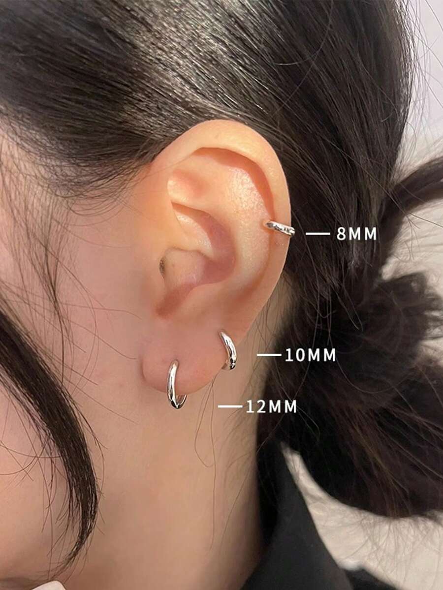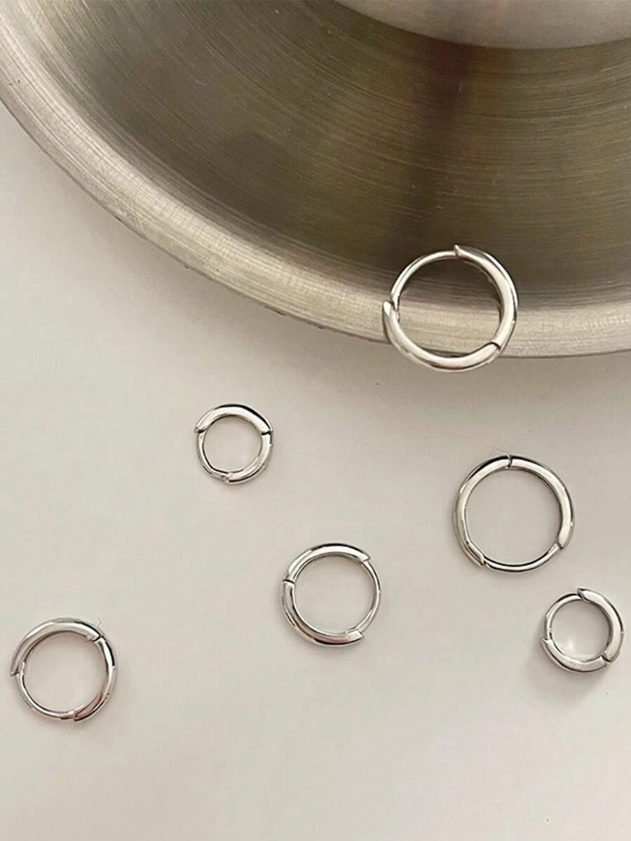 Grunge Punk 6pcs/set Stainless Steel Basic Hoop Earrings, 8mm/10mm/12mm Diameter For Women