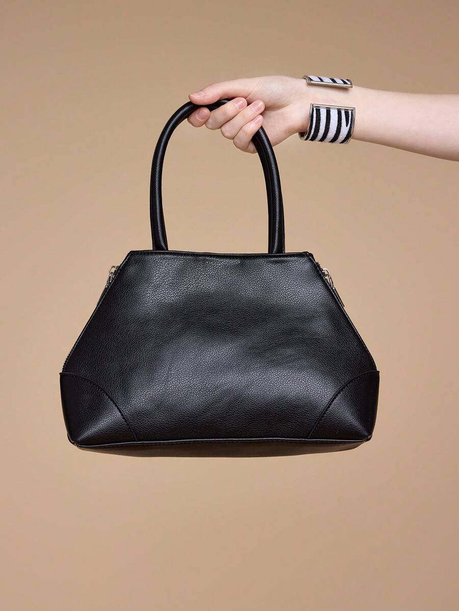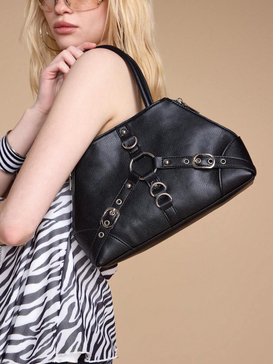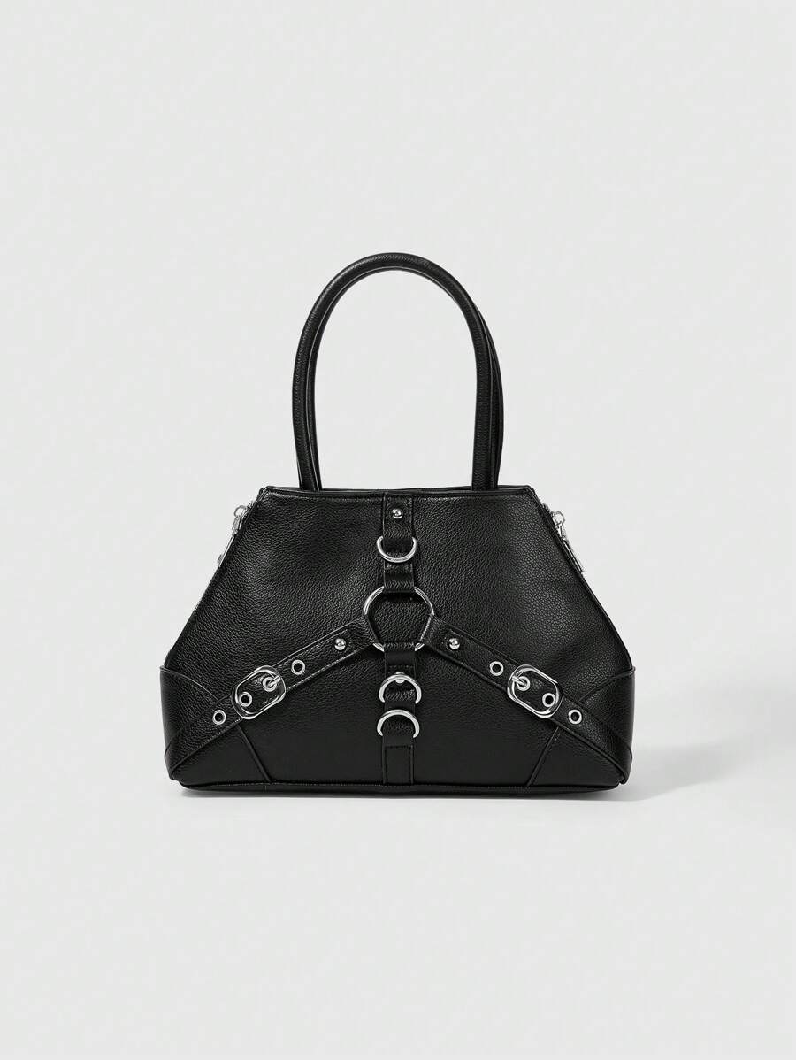 Grunge Punk A Black Handbag/Shoulder Bag With Grommet And Strap Decorations