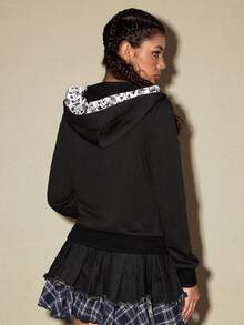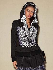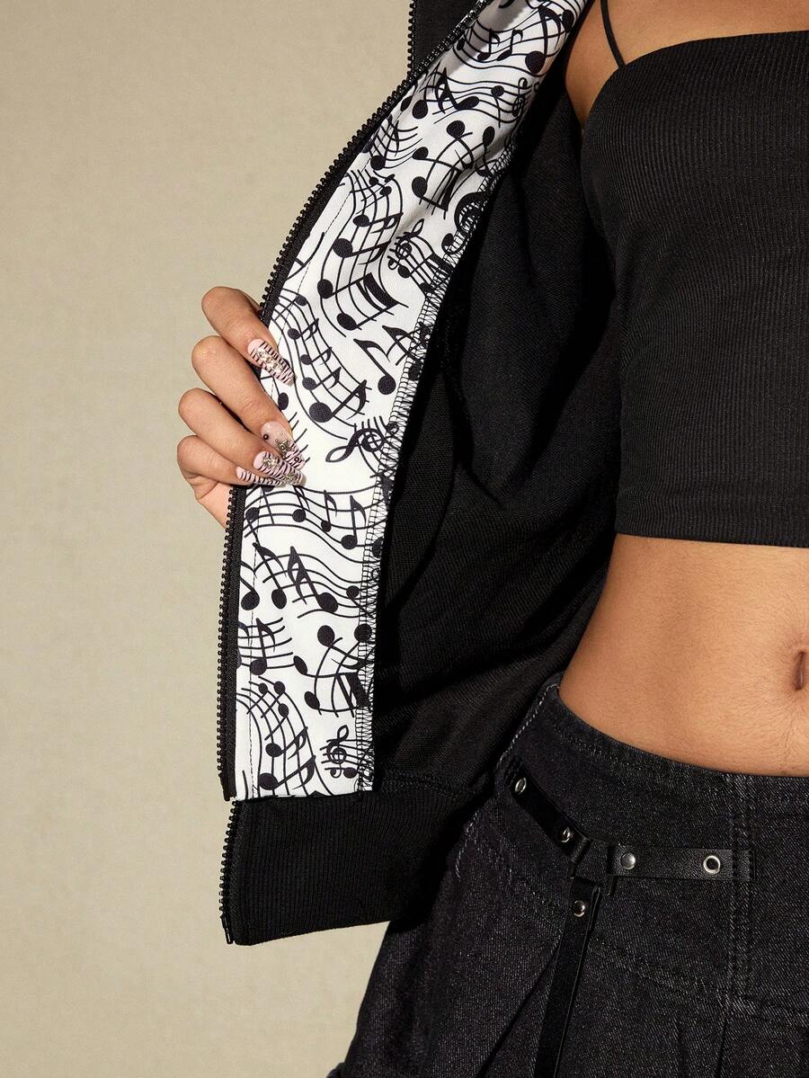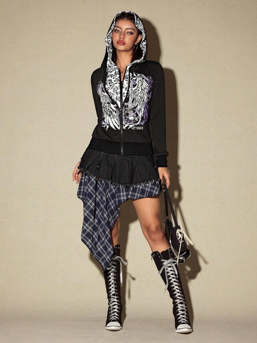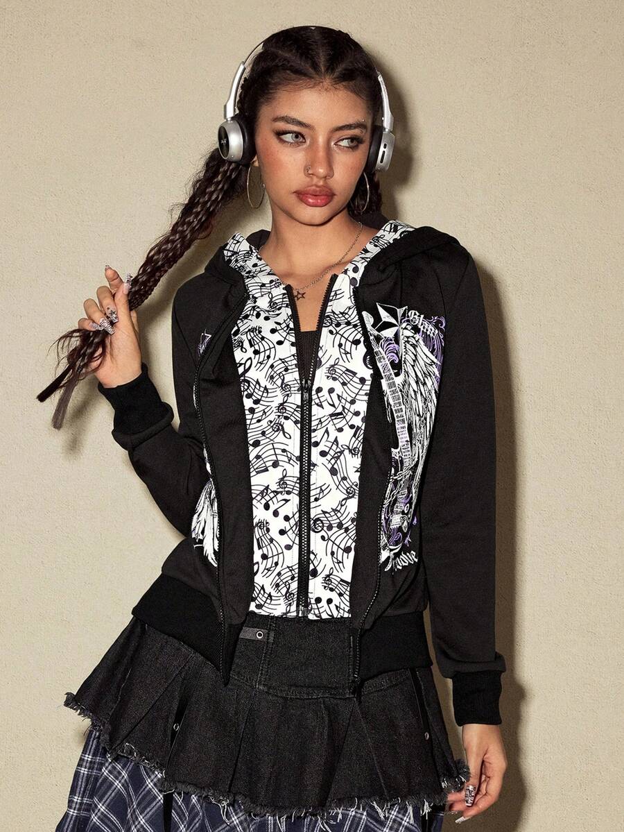 Grunge Punk American Music Note & Electric Guitar Print Pullover Sweatshirt For Women