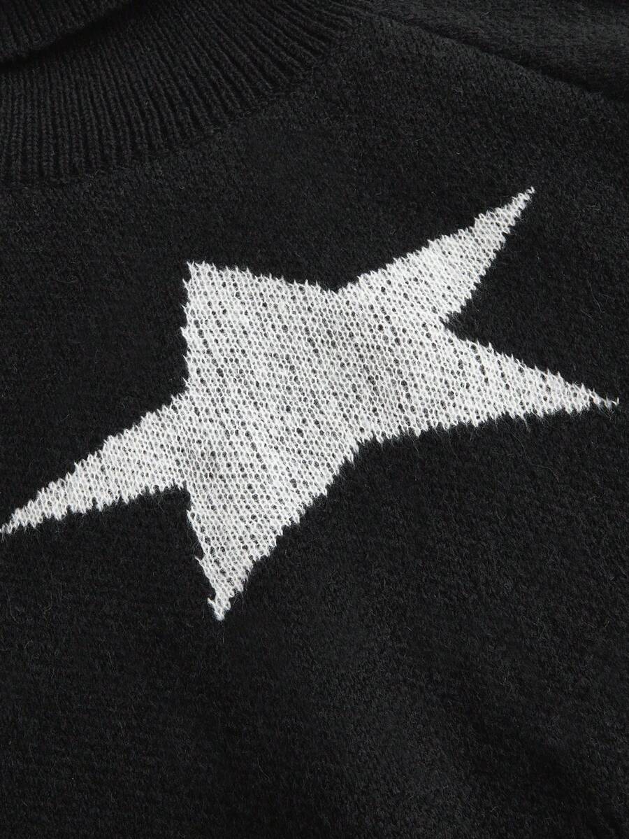 Grunge Punk Black Turtleneck Sweater With Five-pointed Star Pattern