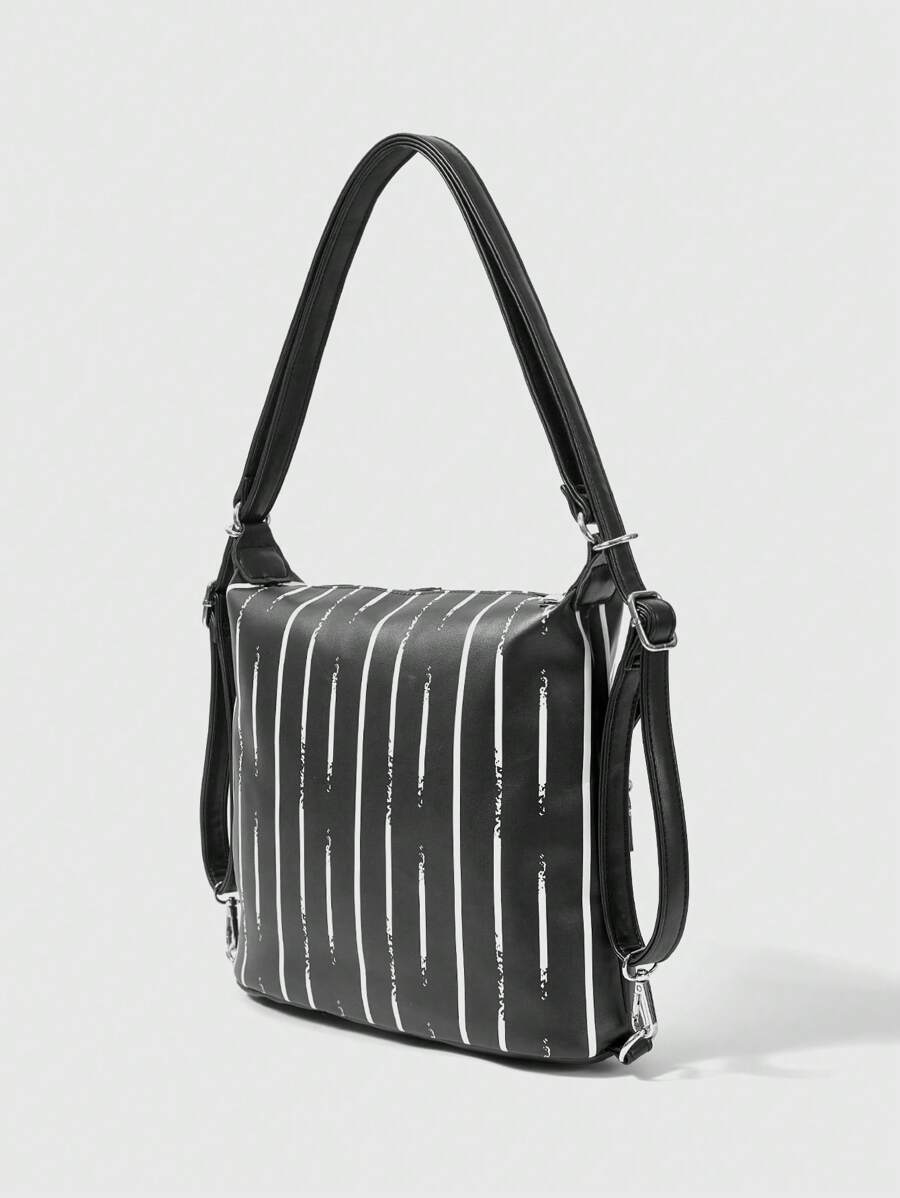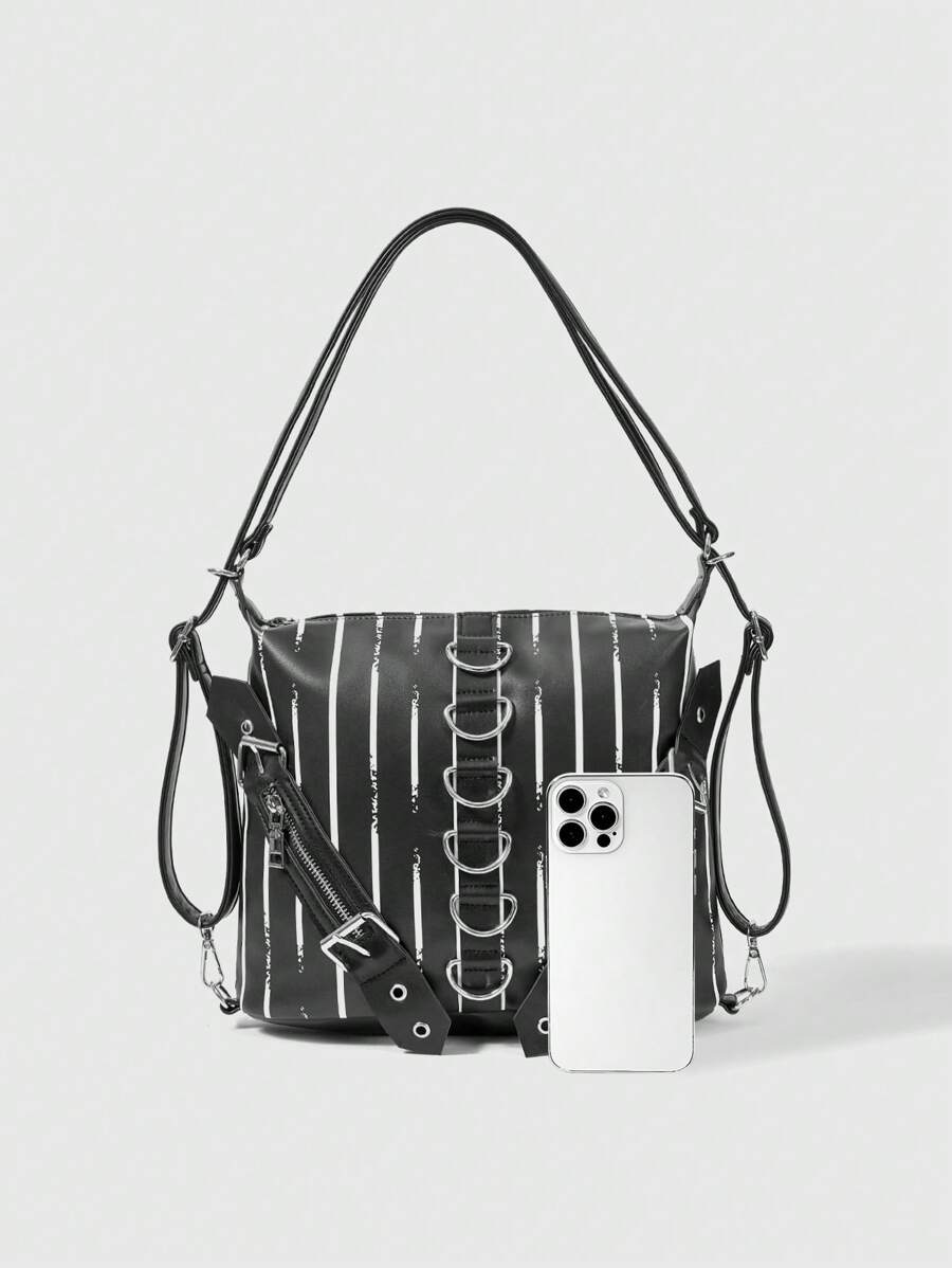 Grunge Punk Black & White Shoulder Bucket Bag, Simple & Practical Multifunctional