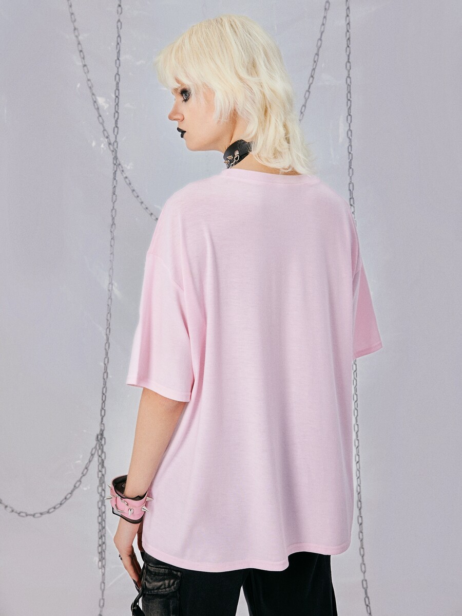 Grunge Punk Cartoon Graphic Drop Shoulder Tee