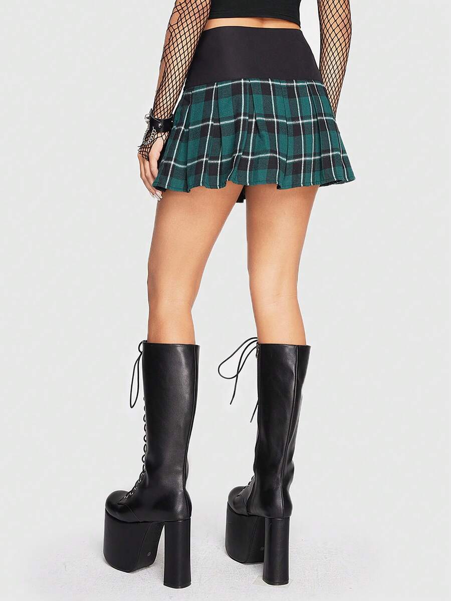 Grunge Punk Casual Vintage Plaid Patchwork Metal Decor Low Waist Skirt For Women