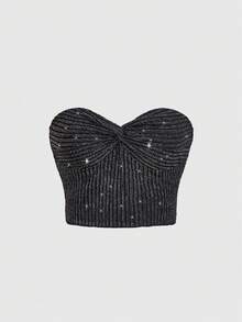 Grunge Punk Christmas Sexy Twist Design Glitter Crop Top, Reversible
