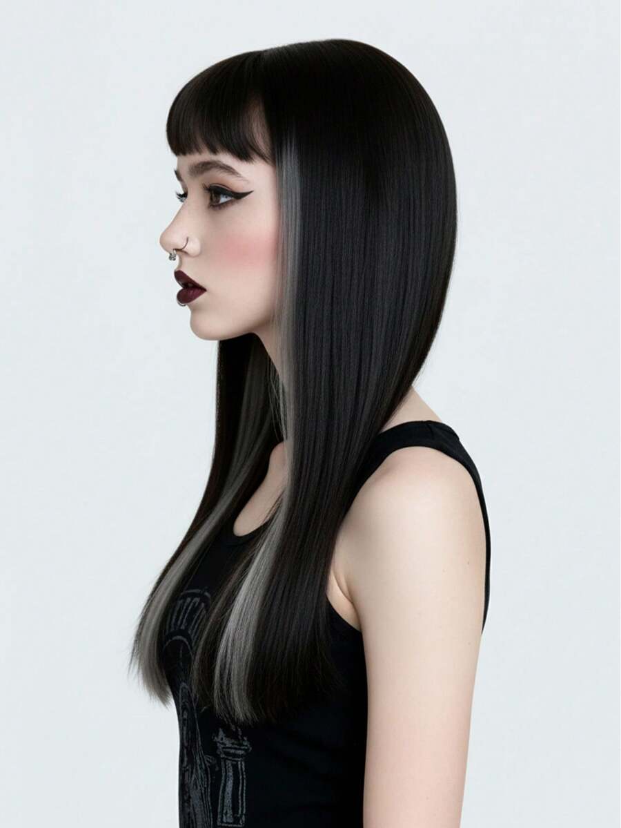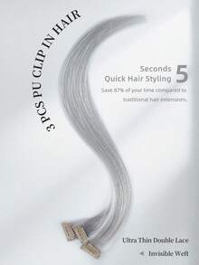Grunge Punk Colored Clip In Hair Extensions 100% Real Human Hair 18 Inch 3Pcs Grey Invisible Straight Highlight Colorful Hairpieces Rainbow Hair Extension For Women/Girls