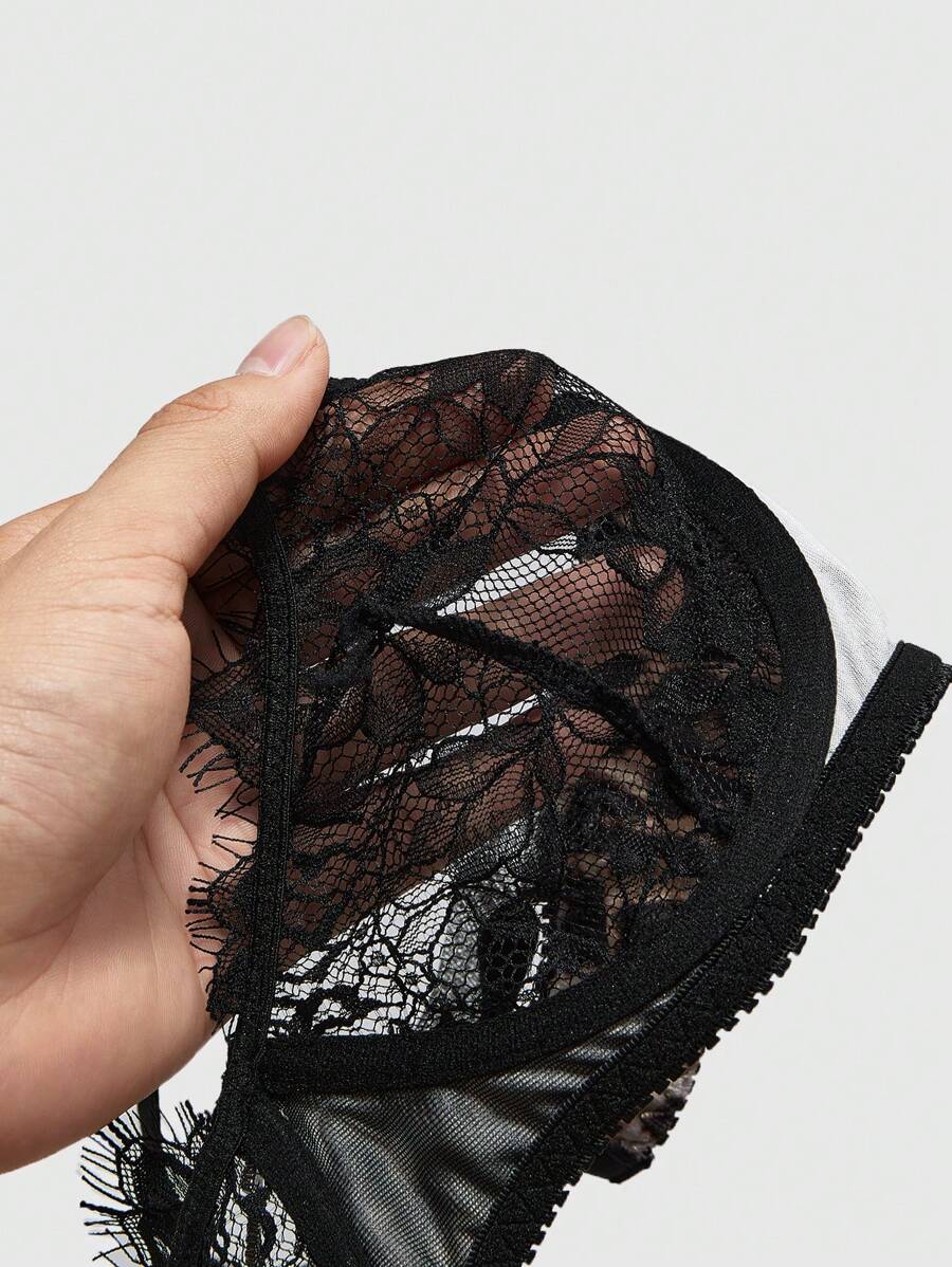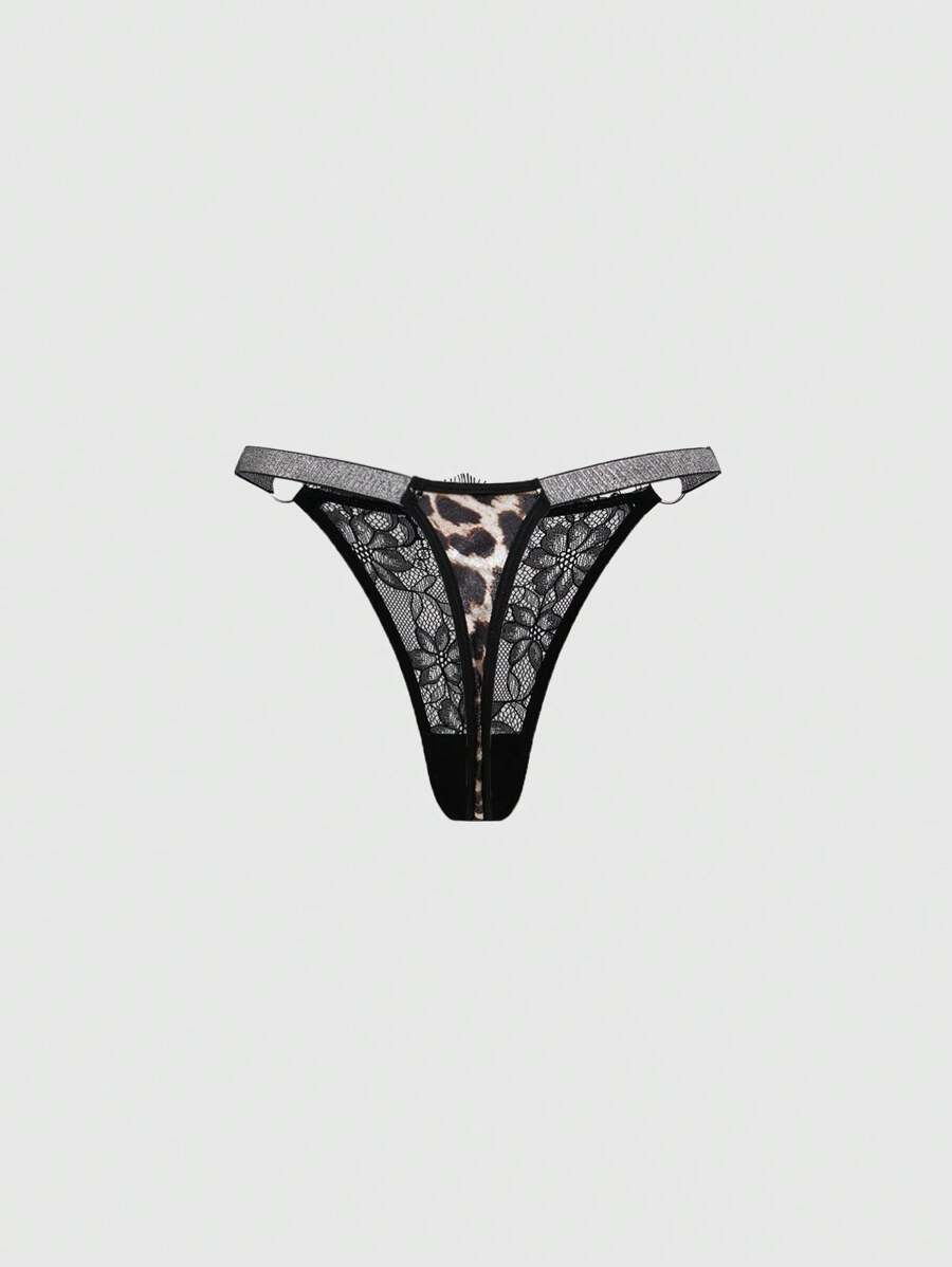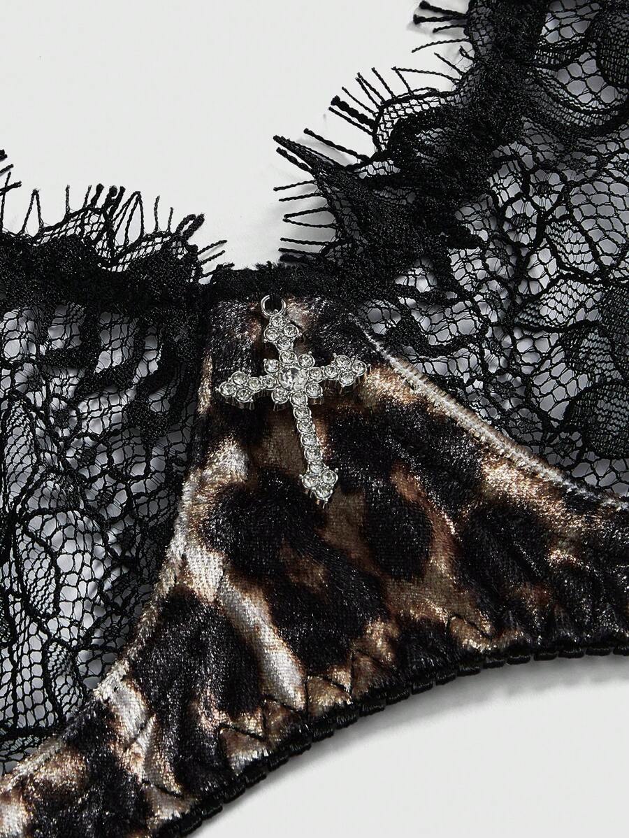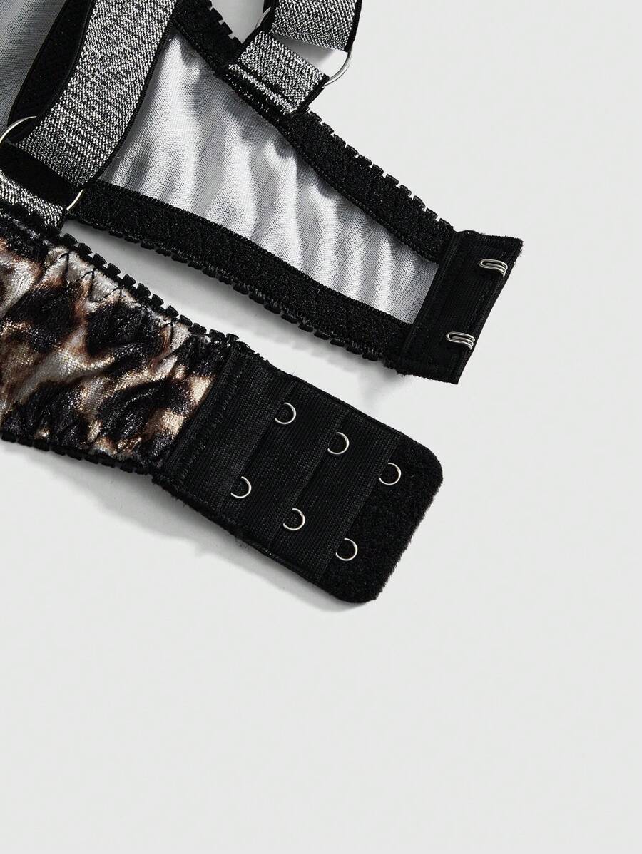 Grunge Punk Dark Gothic Feral Y2K Letter Print Elastic Strap Lash Lace Leopard Print Steel Hoops Bralette And G-String Sexy Lingerie Set
